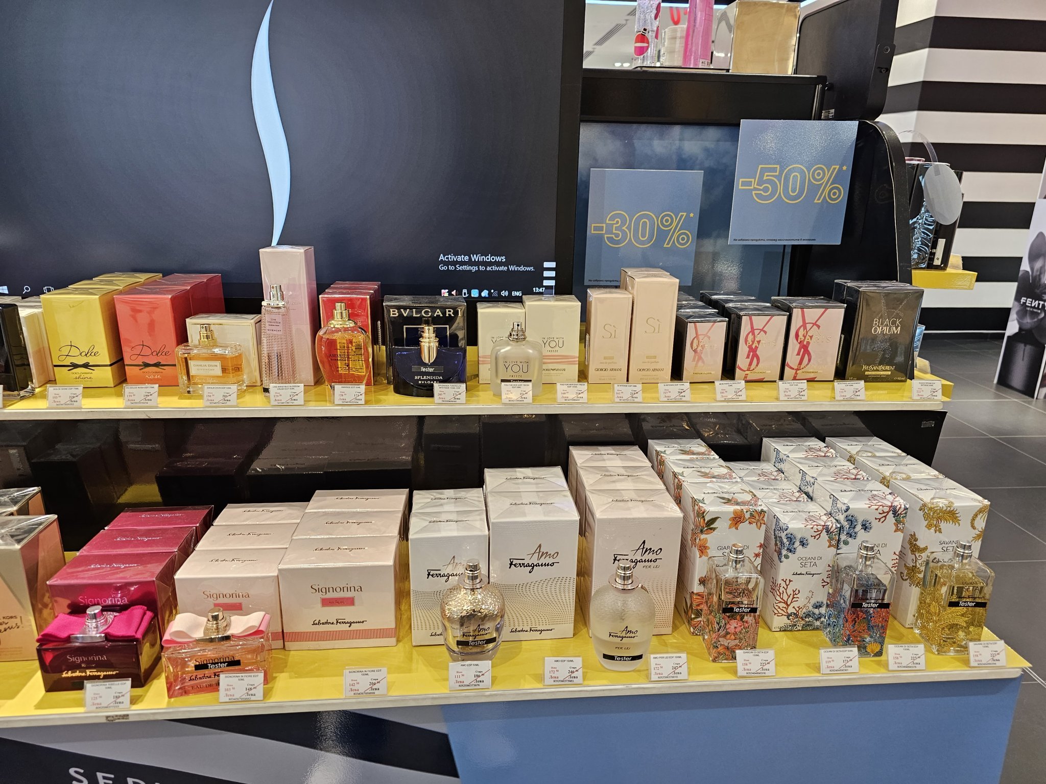 Снимах какво има парфюмно намалено в Сефора The Mall. Имаше и някакви кремове за лице намалени, но нищо у, а, уау. От гримовете аз за себе си не видях нищо да си заслужава, но може това да е от самия магазин. В другите Сефори не знам как е. The Mall е супер умрял в последно време. Кога тръгна надолу този мол...Мислех че е временно, а то стана още по лошо.