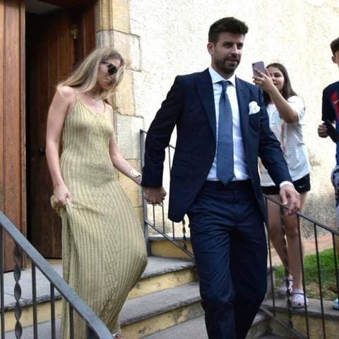 Пике и Клара Чиа на сватбата на брат му. Шакира за тази церемония не е позволила децата им да присъстват.