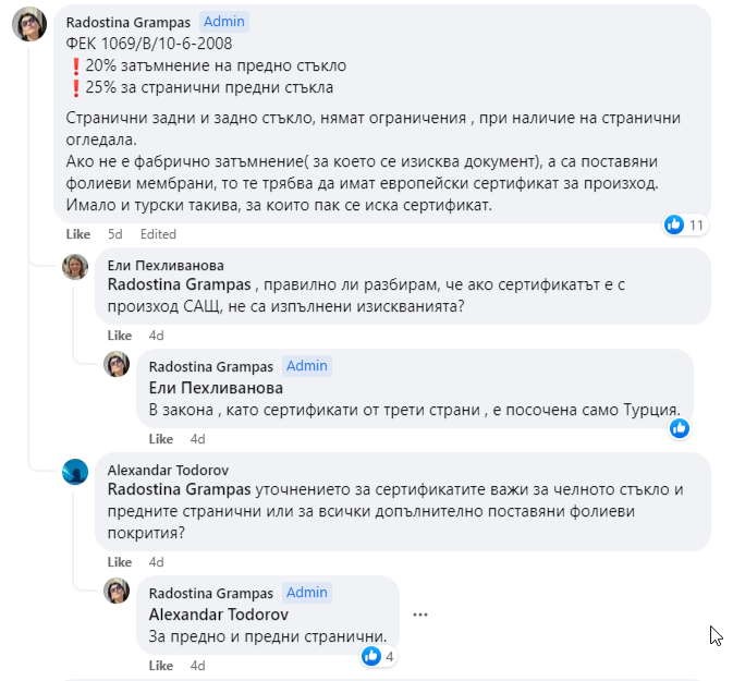 Не вярвайте на всичко, което прочетете във ФБ. В талоните на колата не пише нищо за затъмнени стъкла. При фабрично затъмнени стъкла, процентът затъмнение е изписан на самото стъкло.