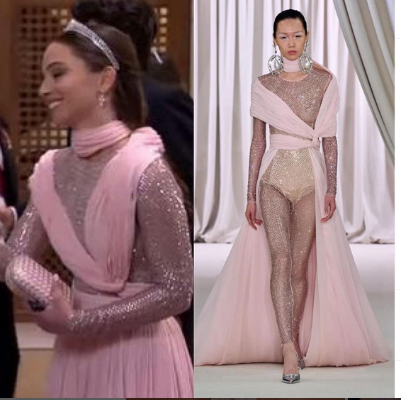 Булката носи поръчкова рокля на ливанеца Elie Saab.