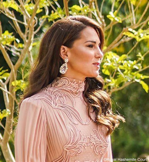 Една по-близка снимка на Кейт, на която се виждат по-добре обеците и детайлите по роклята.