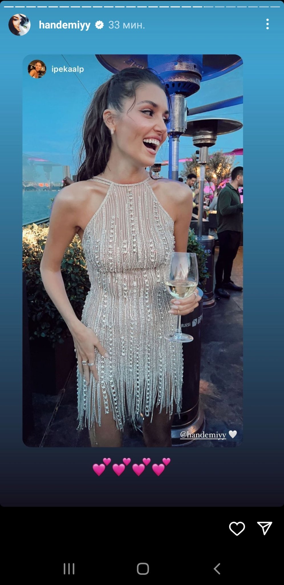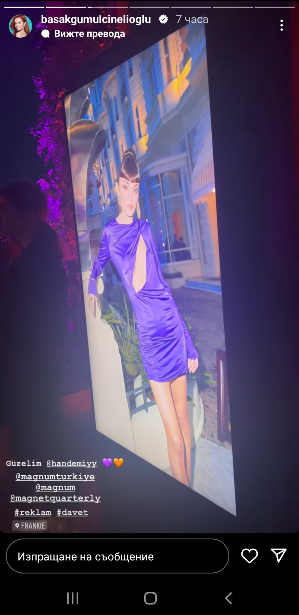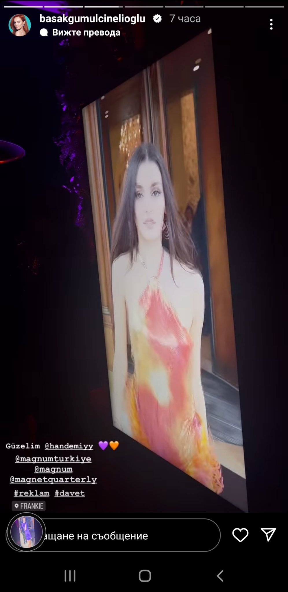 Многократно качваме едни и същи снимки от събитието на Magnum, но няма как да не се повтаряме! Толкова красиво, усмихнато, ведро и щастливо е лицето ѝ и толкова стилна, изискана, елегантна и неустоима е визията ѝ! И Слънце, не си само ти пристрастната! Аз далече не съм от групата на най-върлите почитатели на турското дизи изкуство, в смисъл че не гледам много турски сериали особено след "Почукай на вратата ми", но следя основните "играчи" през последните 5-6 години и намирам, че през последните години Ханде Ерчел наистина няма еквивалент! Това е моето лично мнение! Gift Heart