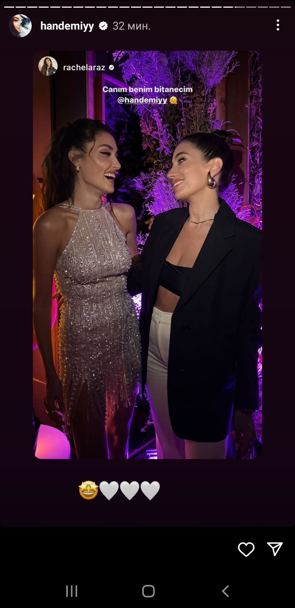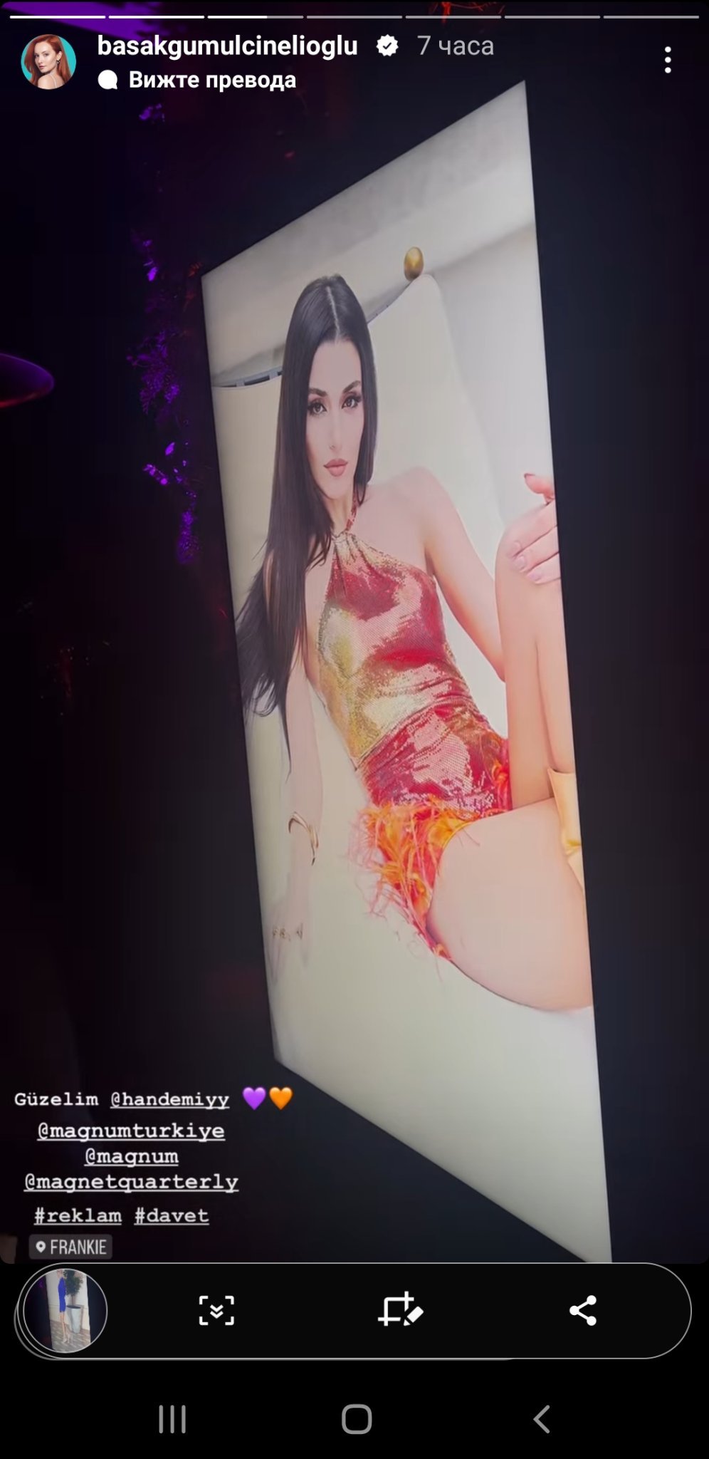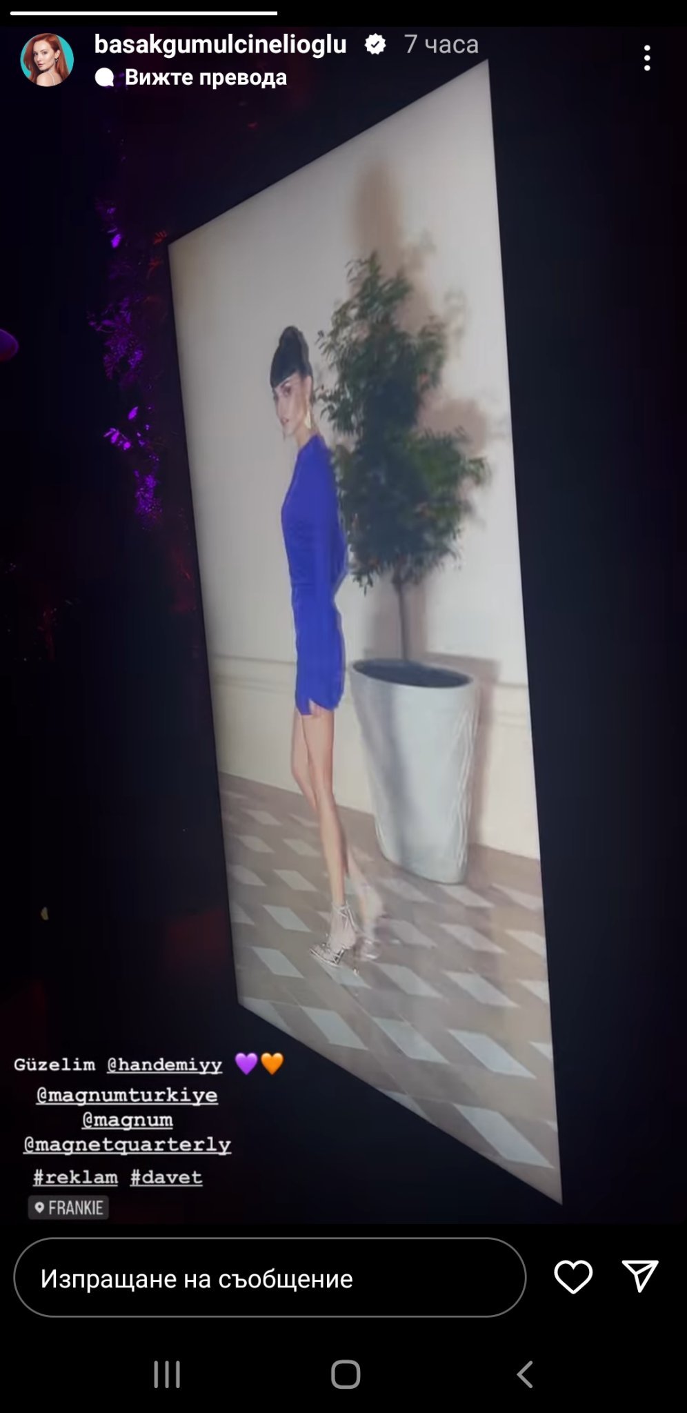 Многократно качваме едни и същи снимки от събитието на Magnum, но няма как да не се повтаряме! Толкова красиво, усмихнато, ведро и щастливо е лицето ѝ и толкова стилна, изискана, елегантна и неустоима е визията ѝ! И Слънце, не си само ти пристрастната! Аз далече не съм от групата на най-върлите почитатели на турското дизи изкуство, в смисъл че не гледам много турски сериали особено след "Почукай на вратата ми", но следя основните "играчи" през последните 5-6 години и намирам, че през последните години Ханде Ерчел наистина няма еквивалент! Това е моето лично мнение! Gift Heart