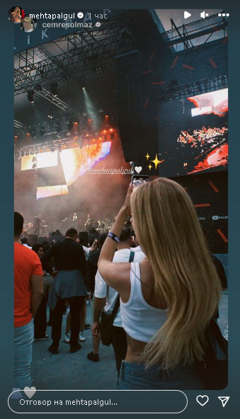 Керем е в бекстейджа, на самата сцена, при приятелят си, а инфлуенсърката е сред публиката. И снима от далече. Познавайки Керем като джентълмен, не би оставил "приятелката си",  независимо каква точно е, долу в тарапаната. Тя щеше да е горе при него, в безопастност. Търси популярност покрай слуховете...