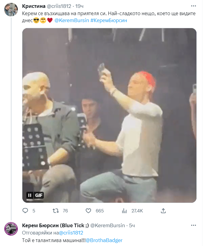 А снощи Керем купонясва на концерта на своя приятел Ботан.