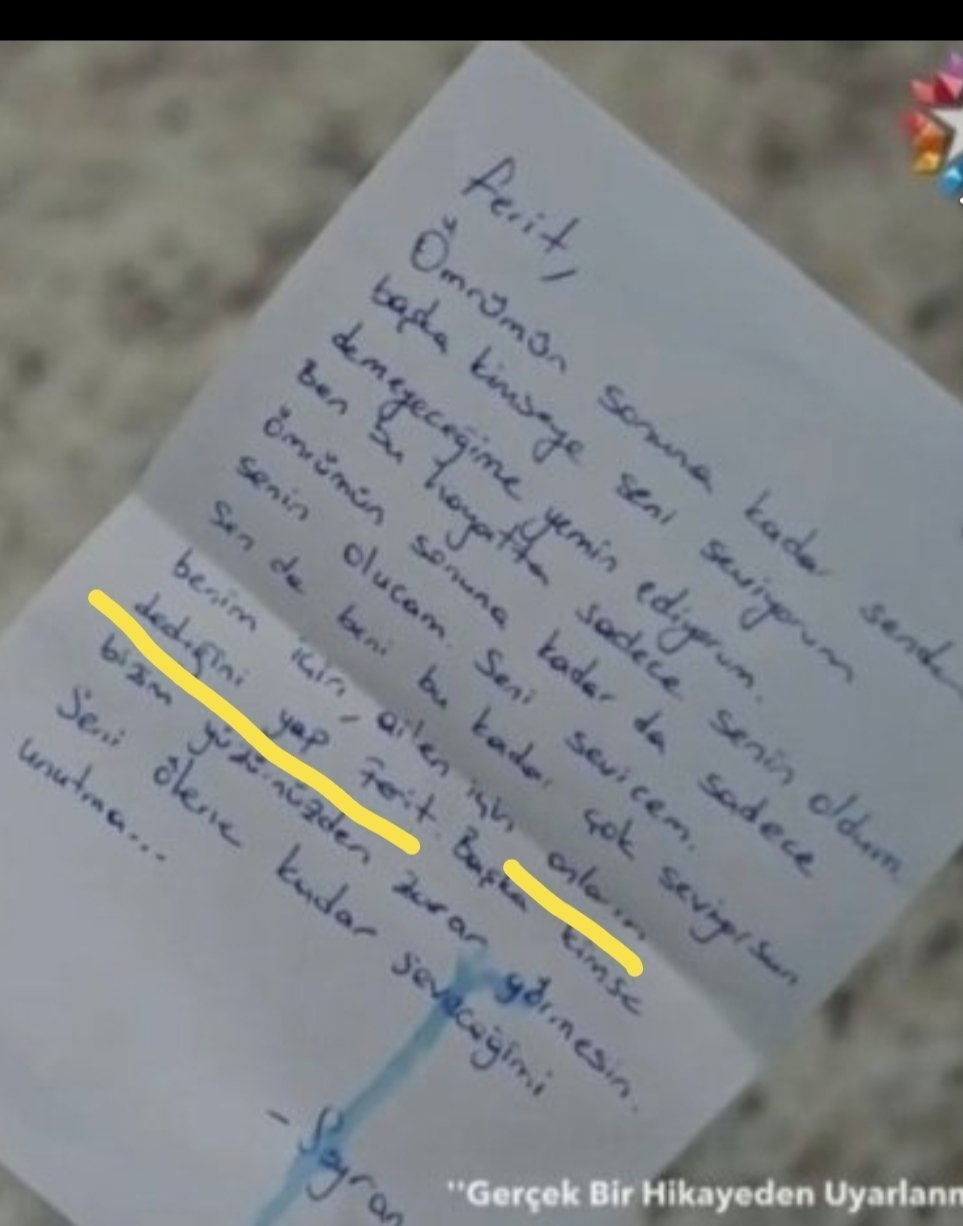 Не знам за вас но пред мен виждам олицетворение на думата катарзис касаещо Ферит Корхан. И въпреки това което пише в писмото няма да я послуша и тук въпроса не е кой обича по силно
