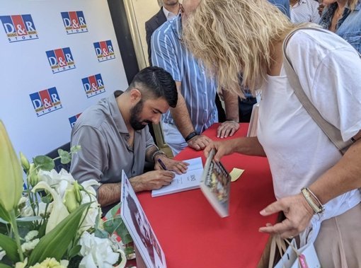 После имах нужда от силно кафе. Ходих, пих кафе в кафенето до книжарницата, после се върнах, опитах се да надничам, за да го зърна отново, снимах отдалеч, но охраната не пускаше никого. После влязох в книжарницата, говорих си с много хора, седях на стълбите и през цялото време знаех, че той е там, на десетина метра от мен, подписва книга след книга и се усмихва на всеки пет секунди.
