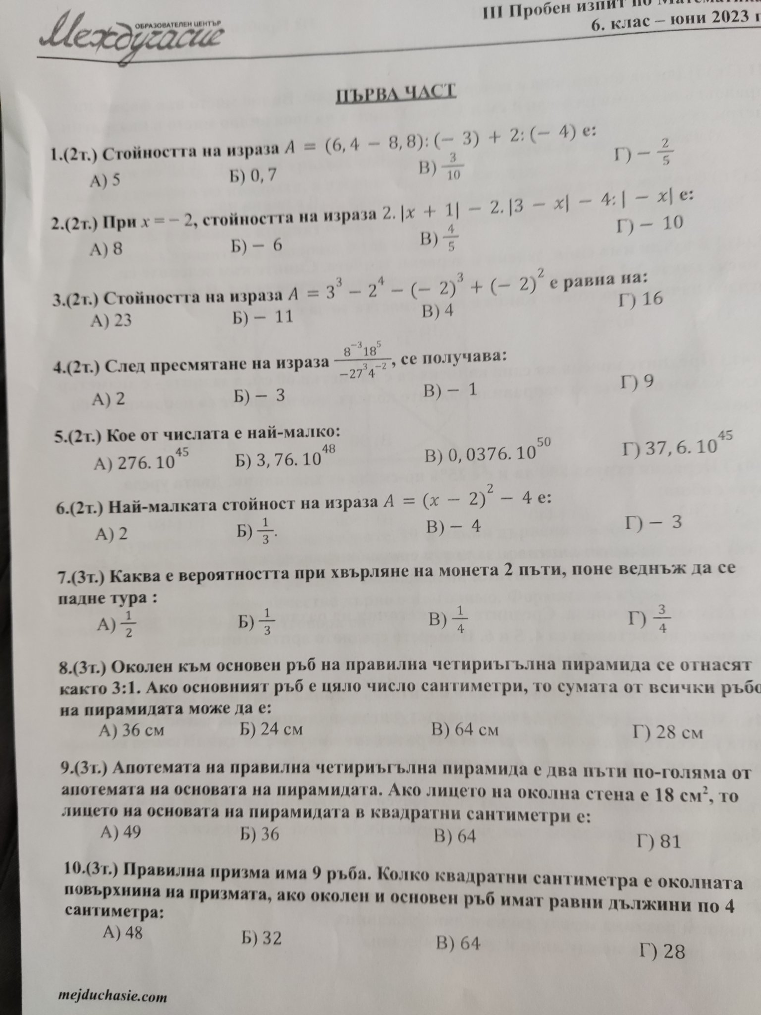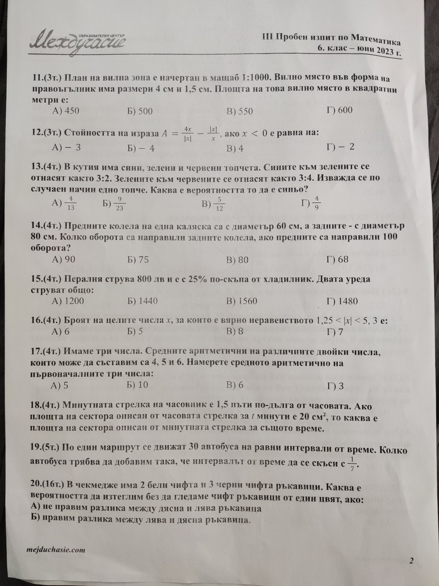 Ето от мен пробния изпит на Междучасие за шести клас от юни месец (не съм сигурна дали вече е споделян). Вторият модул е с доста трудни задачи според набора.