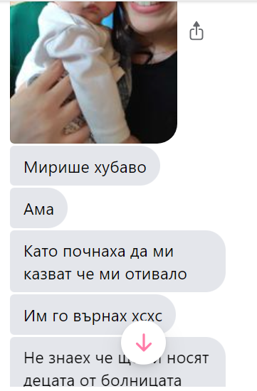 Част от чата по темата - с нарочно поотрязана снимка на дъщеря ми и чуждо бебе, което си има кака на 3 и батко на 7.