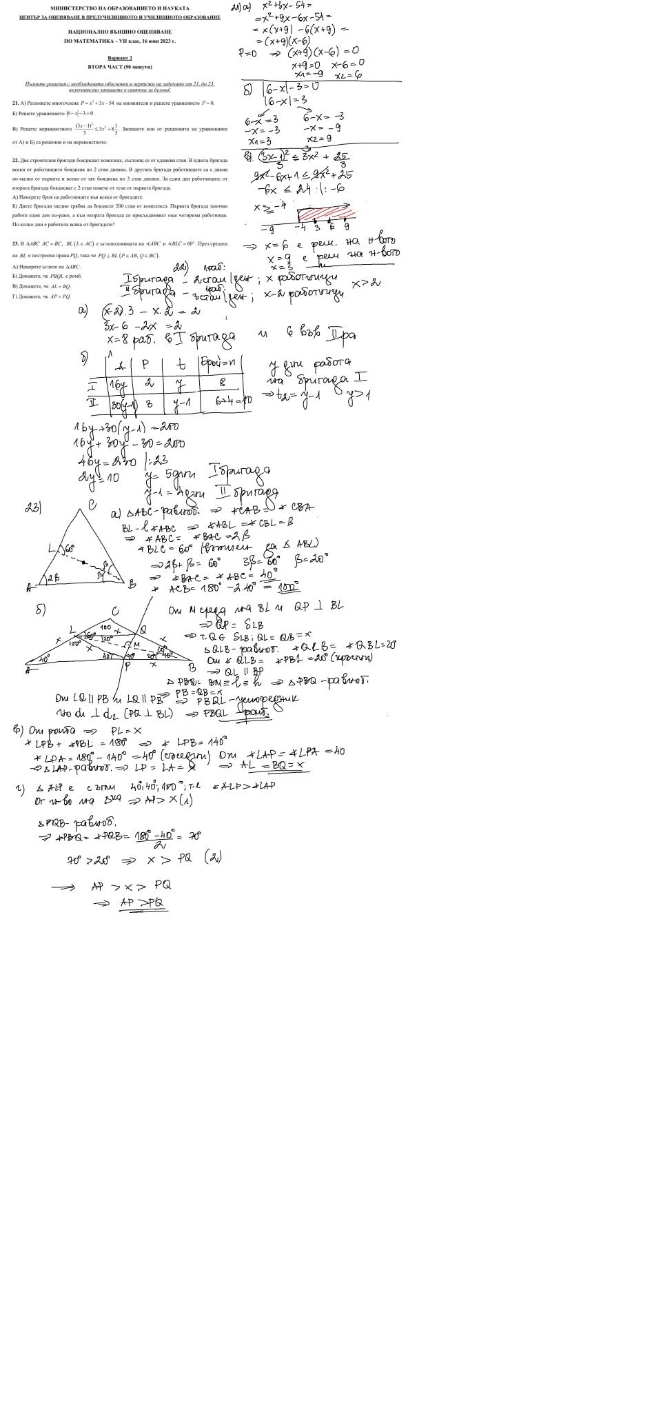 Моята девойка каза,че на първи модул първоначално е пропуснала 5 задачи.Направила го до края и се върнала да си ги решава отново,но две е играла на тото!19 задача каза че е била гадна и не е много сигурна дали е вярна!На втори модул 21 частично е решена 22 цитирам:"Писах някакви пълни глупости" 23 е направила чертеж и две от подточките! Абе разстроена си излезе!Каза,че ако има 50т. ще било чудо!