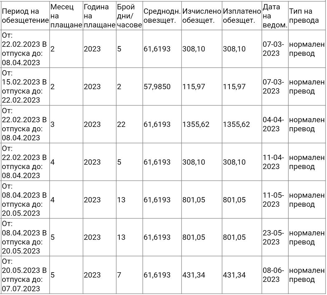 Здравейте! Това ми е справката от НОИ. Защо през май месец има две плащания а през юни едно. Изобщо не мога да разбера колко в крайна сметка ми е майчинството, на кои дати се изплаща и на два пъти ли, наведнъж ли. Моля за разяснение и благодаря предварително!