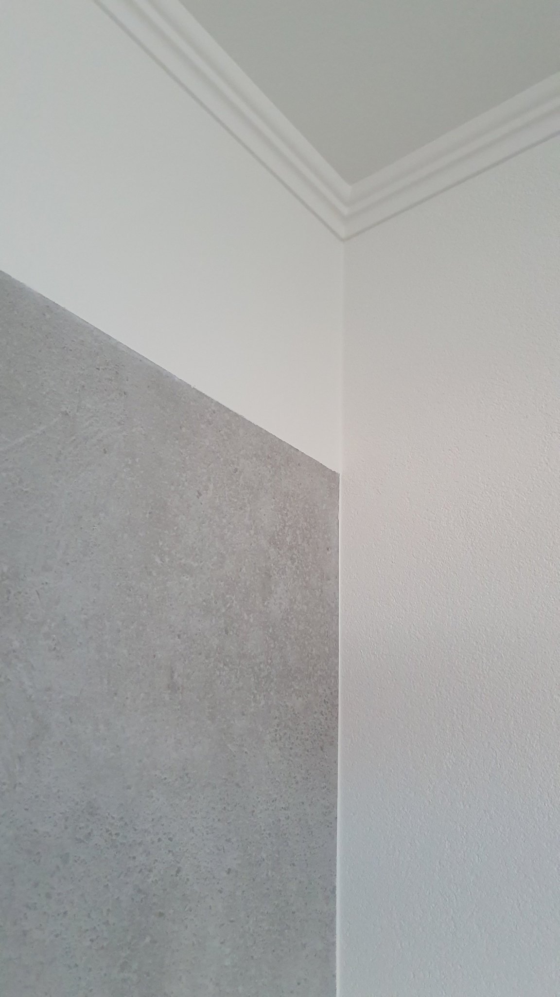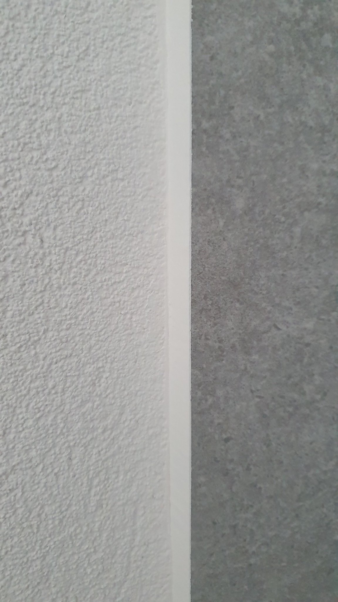 Забравих да спомена ,че на стените без плочки имаме рязани подови первази  от плочки ,също  фугирани  и боядисани като на първата снимка .Фугата се праши, но я минавам с прахосмукачка .Сигурно веднъж годишно я мия  .Боята ,обаче е  качествена фасадна ,не за бани ,самите бани са доста големи не стават димна завеса след къпане .