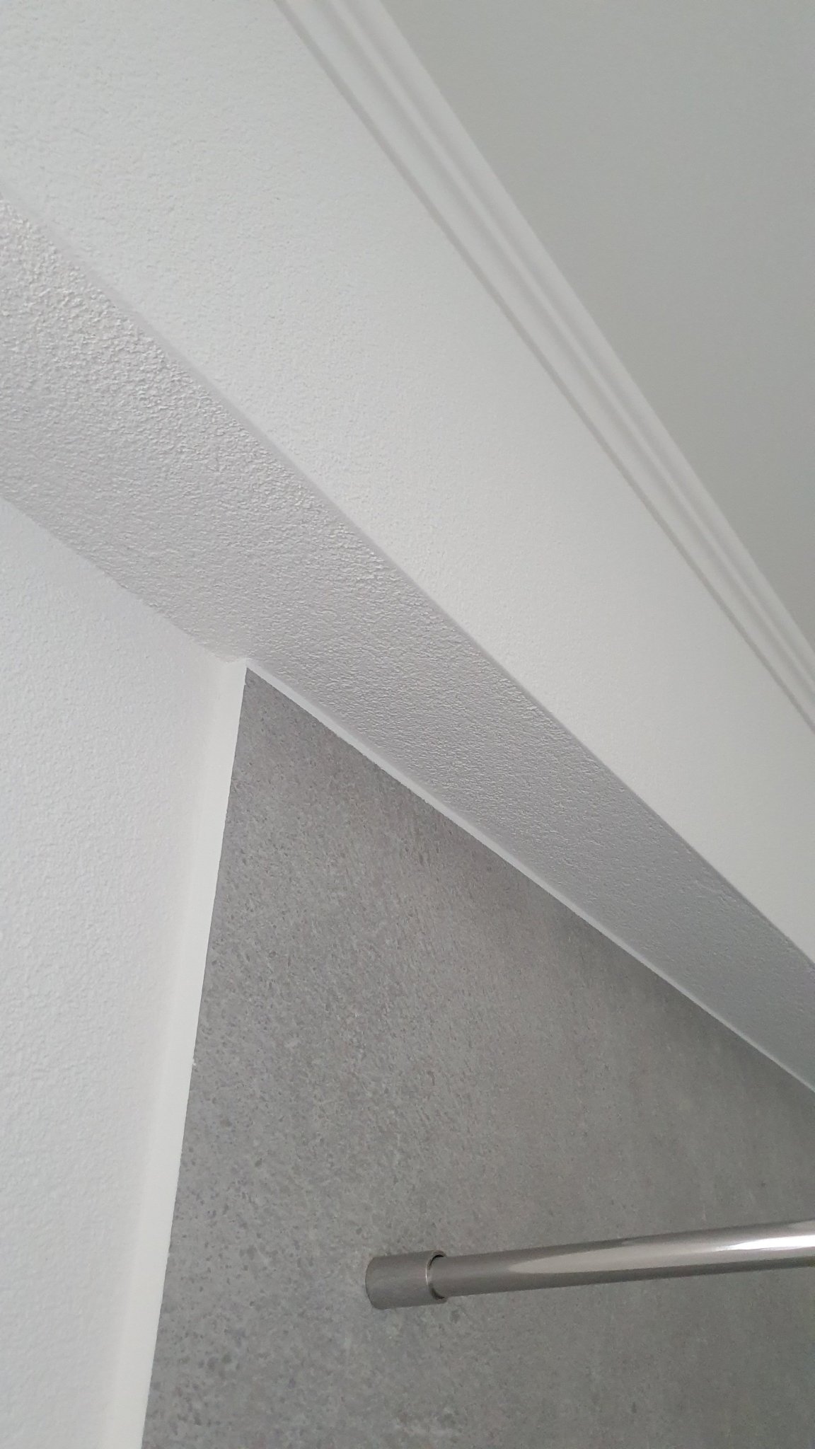 На същата стена има бетонена греда отгоре ,затова плочките са до нея .