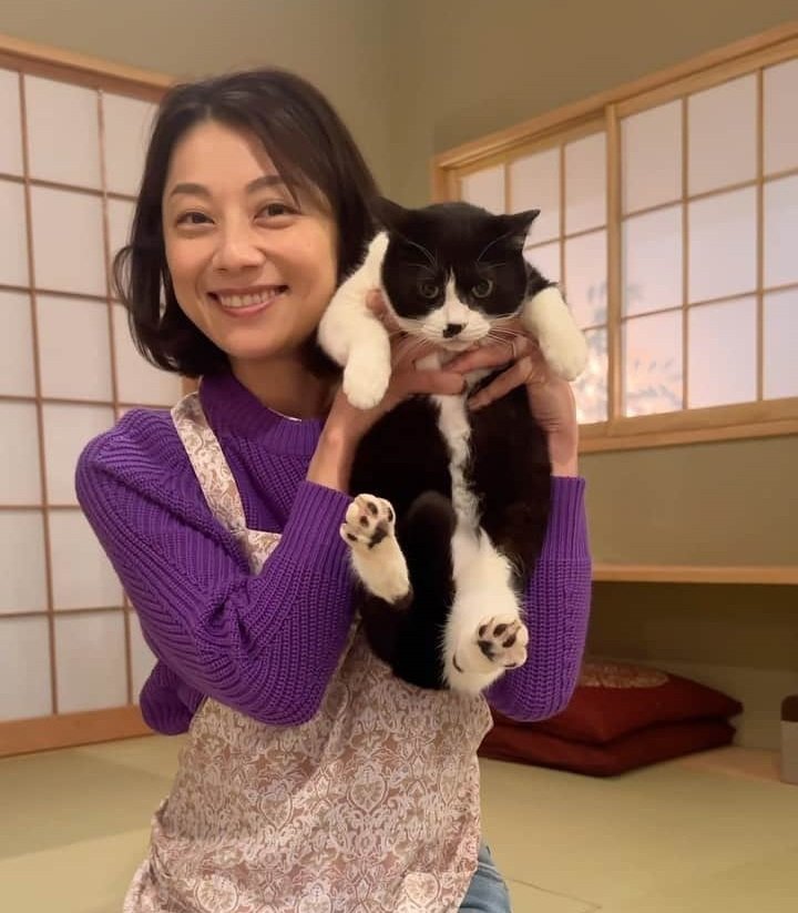 Това е котаракът Чо-сан, който си живурка доволно в това семейство.