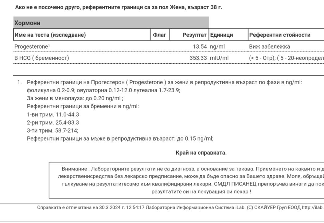 Здравейте. Отново изследвах чхг,както и пуснах прогестерон. Ще се радвам да споделите мнение,дали нещата се развиват добре. Изследванията са от 30.03 и 01.04
