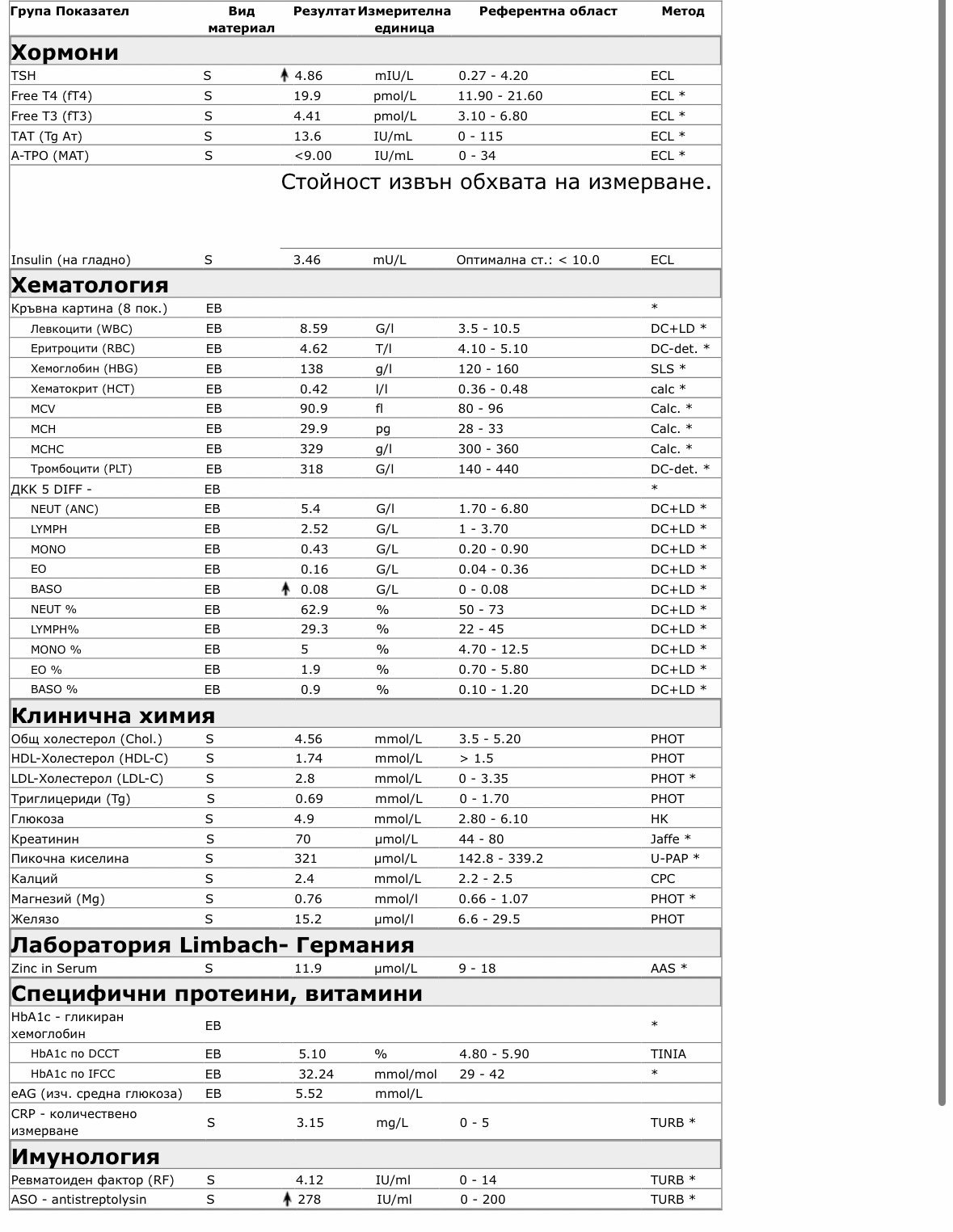 ПП. Посочвай и рефер. граници, за всеки случай, че дори и да ги знаем, по-общо, някои лаборатории имат малко по-различни... та моят коментар е за тези, общите рефер. граници.