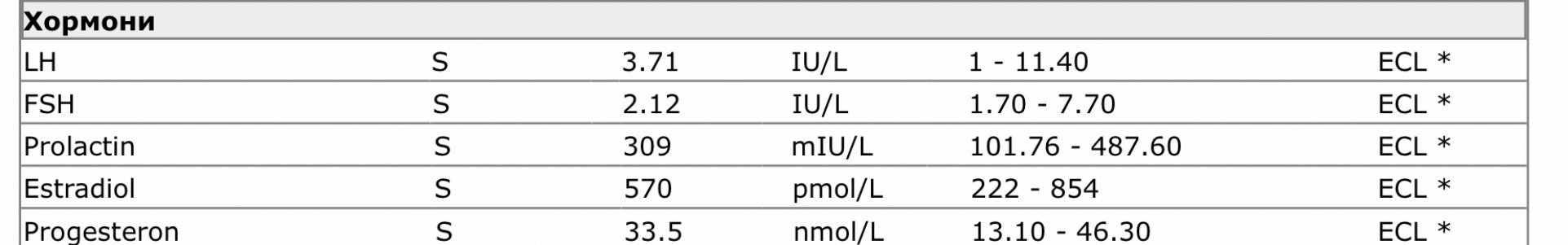 За контекст същите хормони бяха със следните стойности преди 3 месеца: