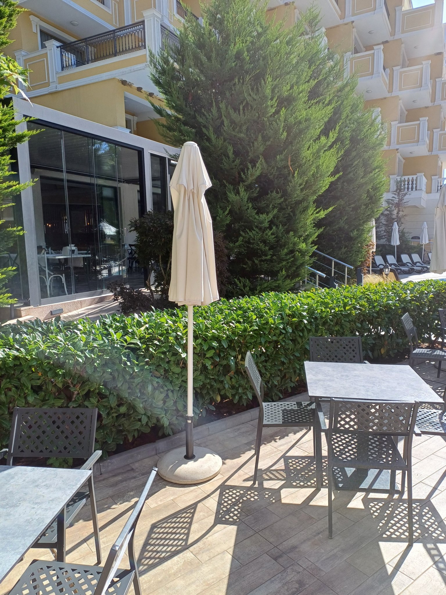 И за да се разхождате в парк сте съгласни да ядете боклуци и в мръсни съдове?! Да спите в продънени легла и да рискувате да получите стомашно-чревни инфекции?! Като ще плащам хич даже не малка цена не значи, че трябва да е само за парково устройство. Има доста прекрасни хотели с чудесно озеленяваме, но и с перфектна база и услуги. Не става само със стара слава и да се вдигат цените, а качеството да е потресаващо. Ето в момента сред какво прекрасно озеленавяне си пия кафето и плажувам на морето, но без да имам горните ужасни екстри.