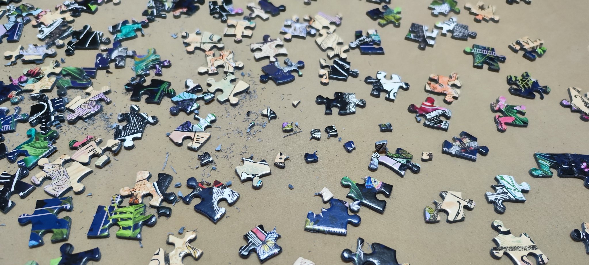 А горкият пъзел изглежда като с нестандартни части, така е оръфан.