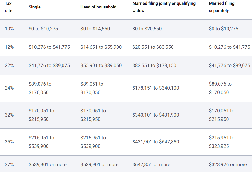 Например ниският данък 12% е до $41к ако си сам, а ако сте двама е до $83к за двамата общо, което е кажи-речи същото.