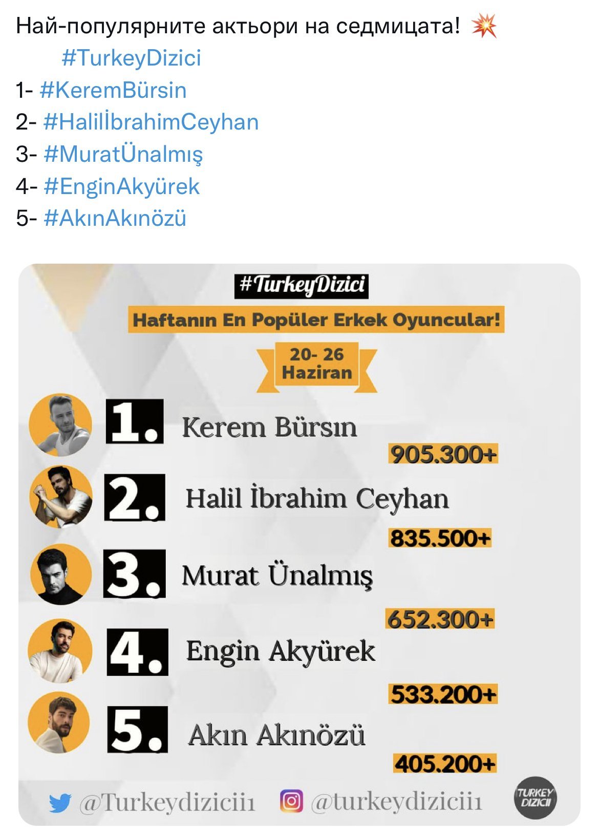 Според DiziWorld "Най-коментираната дизи двойка в света за периода 19 - 25 юни 2023 г."