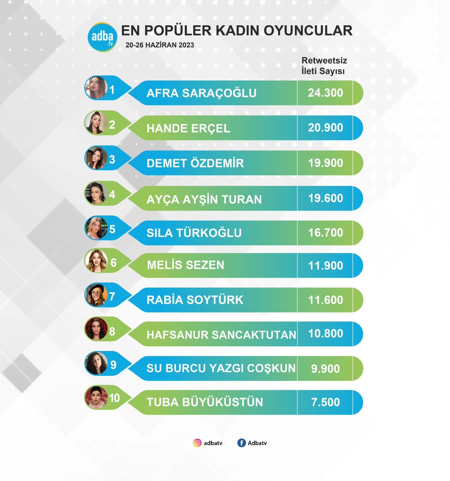 "Най-обсъждана актриса в социалните медии между 20 и 26 юни според AdbaTv"
