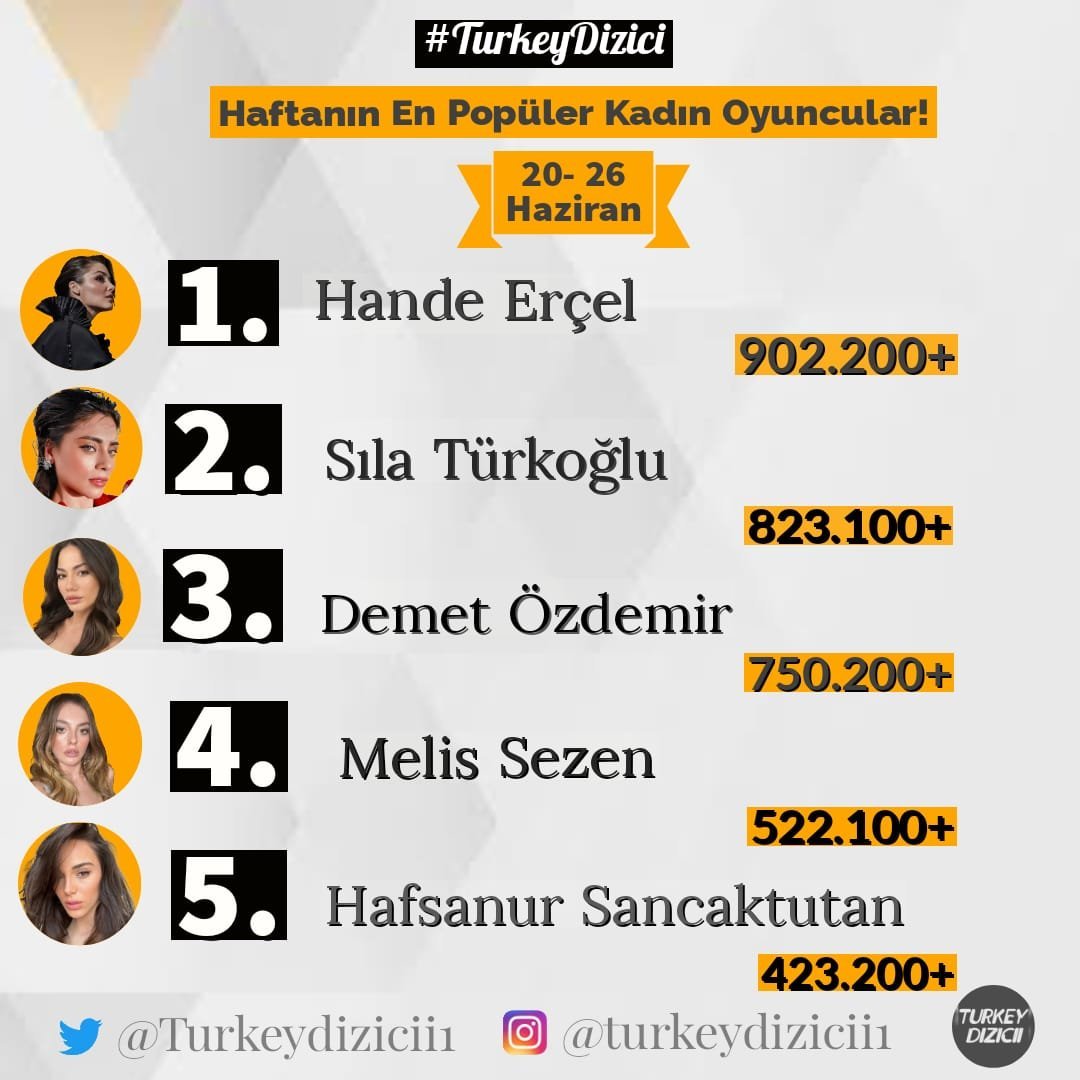 Според Turkey Dizici - Ханде е № 1 в седмичната класация  Sunglasses