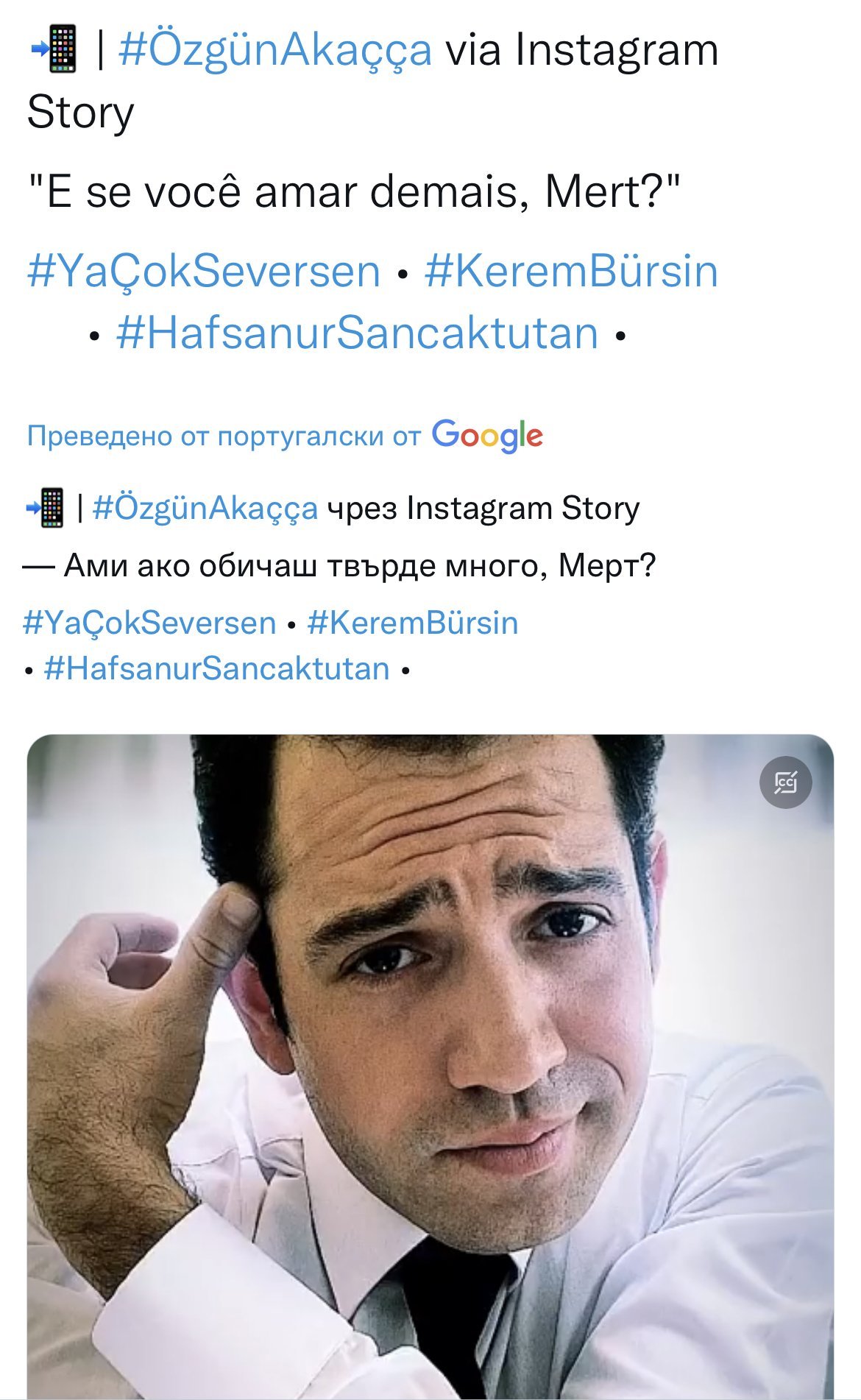 Излезе превод на клипчето. Представлява кратък репортаж, в който представят първия трейлър на сериала и показват това кратко интервю с Керем и Хафсанур. 2мин и половина е цялото, но това е съществената част.