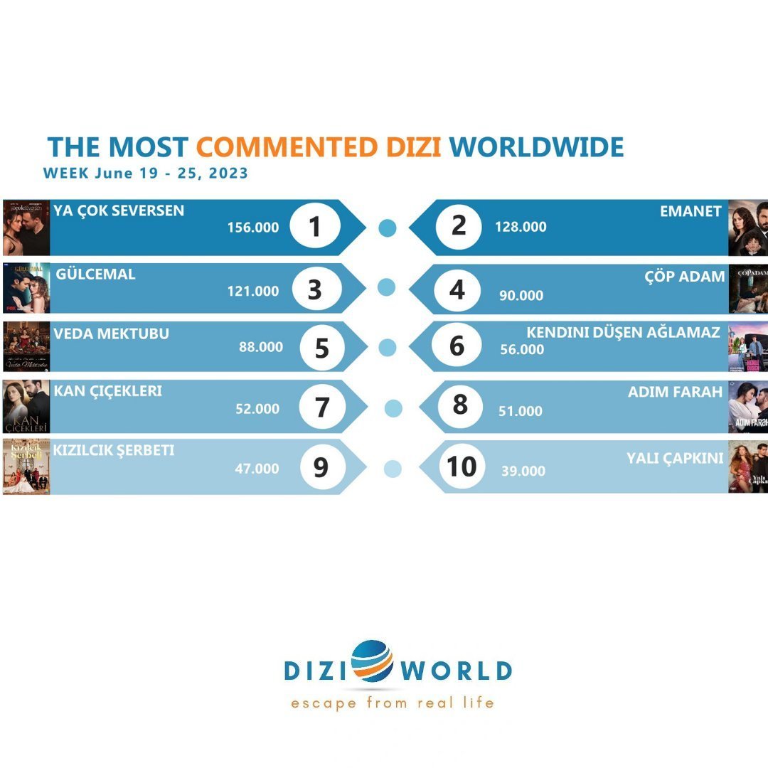 "#yaçokseversen Най-коментираният dizi в света със 156K🥇през предходната седмица, 19 - 25 юни 2023 г."