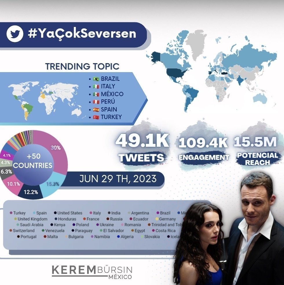 "След премиерата на втория фрагман на Ya Çok Seversen, хаштагът достигна 49,1K Tweets и беше актуална тема в 6 държави."