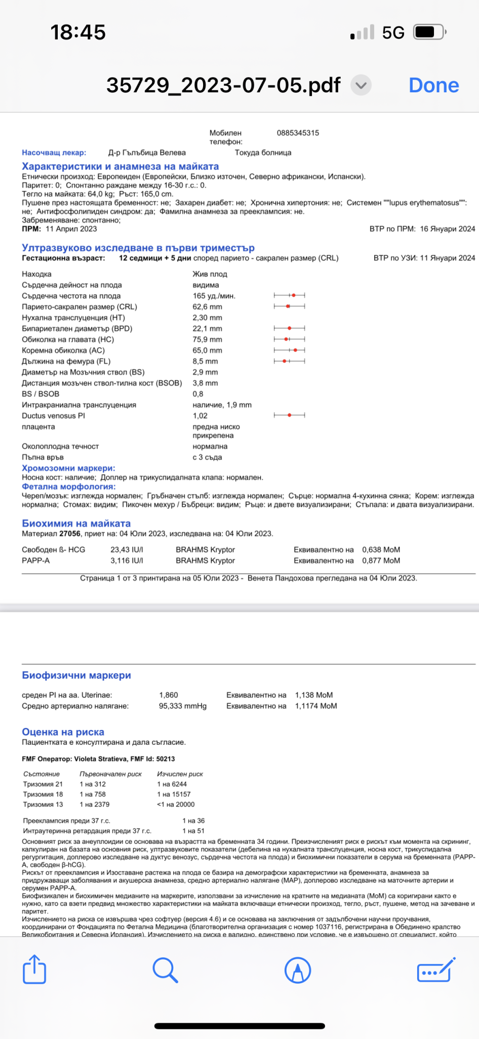 Лято 2021 и моето го пратиха преди. Заключението ми е същото. На теб кръвното колко ти беше? При мен риска за преекламсията е 1:14.