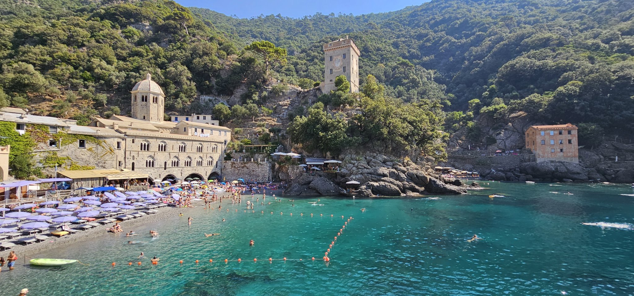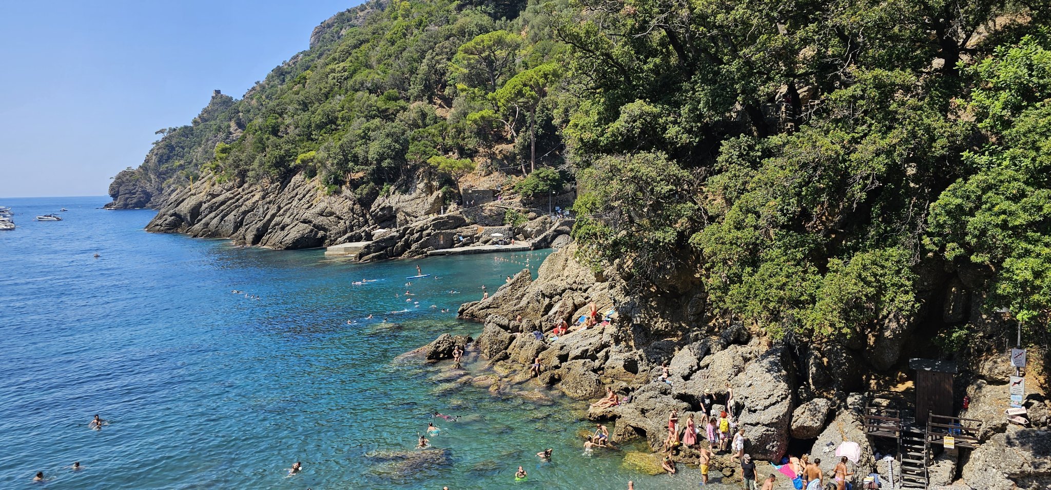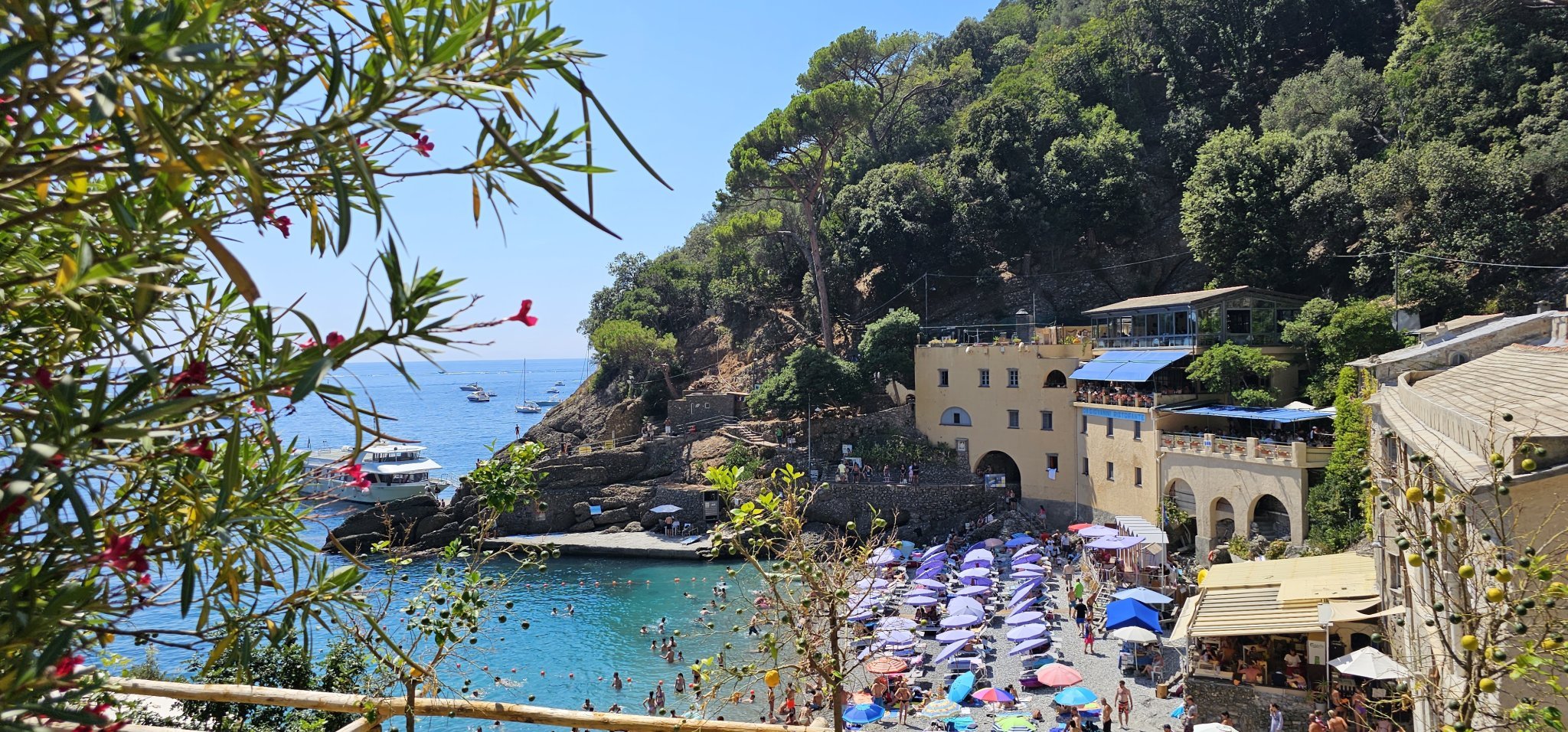 С ферибот тръгнахме от Рапало до Сан Фрутуозо в 10 часа(втори час за деня, първи в 9 часа), беше спокойно и не много претъпкано. Сан Фрутуозо е магично малко заливче, мислихме само 30 минути да сме там и да потеглим за Портофино. Но реално толкова много ни хареса: звукът на цикадите, кристалните води, сянката на боровете, решихме да обядваме там, трудно намерихме места, бяха резервирани повечето, цените бяха по-скъпи от средното, но беше прекрасно. Докато чакахме за маса, едната ми приятелка се изкъпа в залива, беше подготвена с бански и каза, че е било божествено. Останалите топнахме само крачета. 😊 Препоръчвам горещо да стигнете до там.
