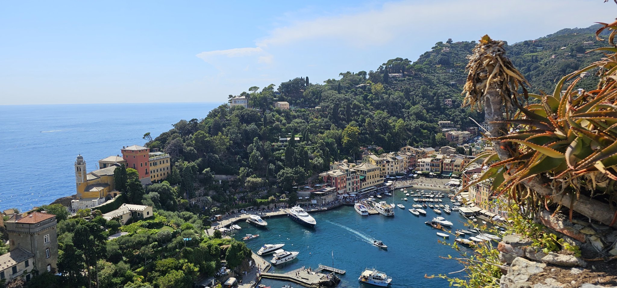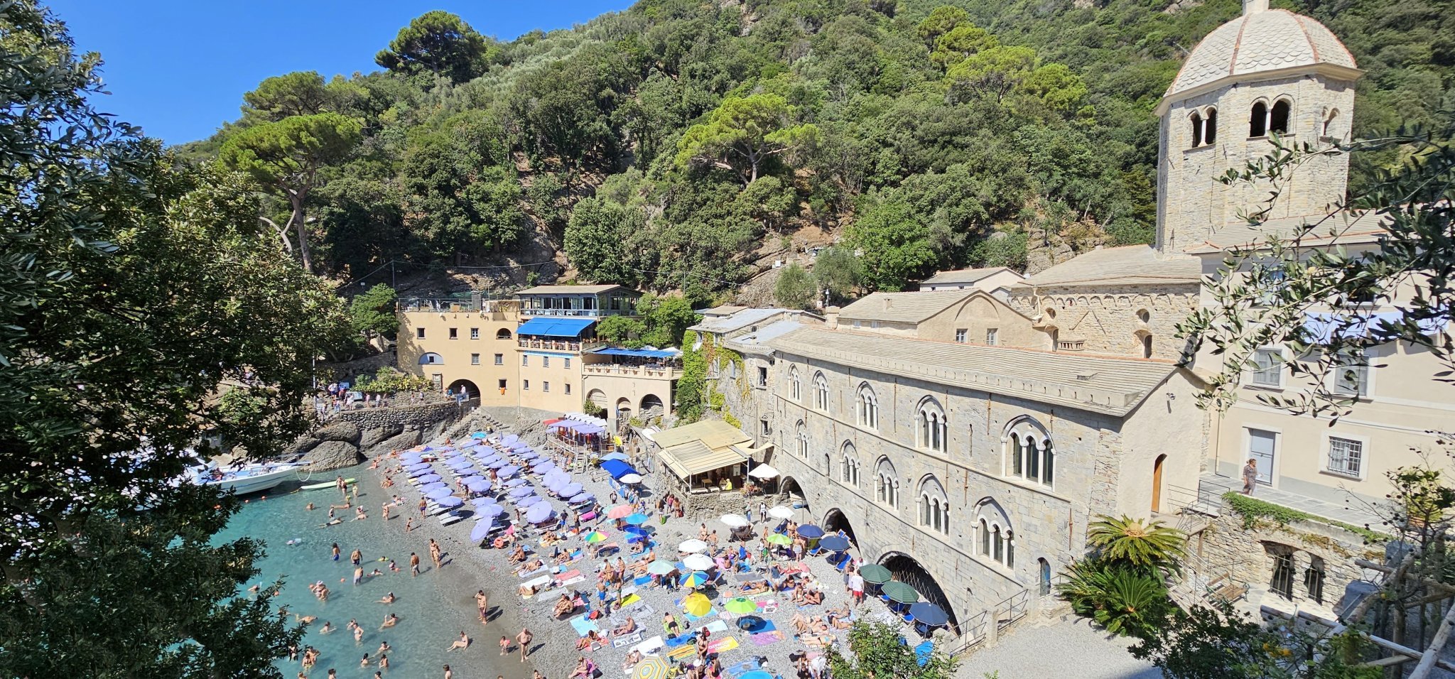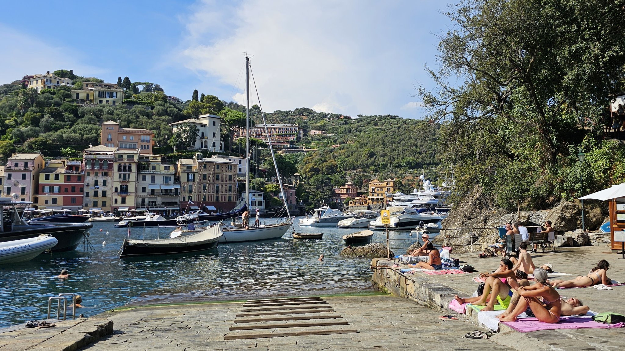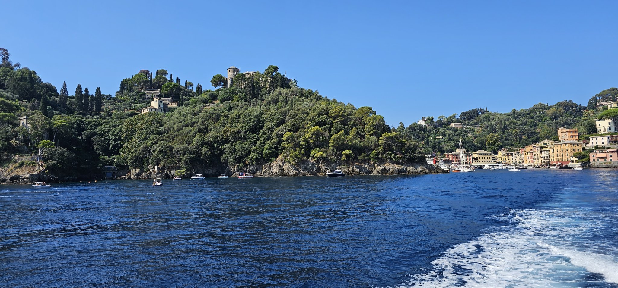 С ферибот тръгнахме от Рапало до Сан Фрутуозо в 10 часа(втори час за деня, първи в 9 часа), беше спокойно и не много претъпкано. Сан Фрутуозо е магично малко заливче, мислихме само 30 минути да сме там и да потеглим за Портофино. Но реално толкова много ни хареса: звукът на цикадите, кристалните води, сянката на боровете, решихме да обядваме там, трудно намерихме места, бяха резервирани повечето, цените бяха по-скъпи от средното, но беше прекрасно. Докато чакахме за маса, едната ми приятелка се изкъпа в залива, беше подготвена с бански и каза, че е било божествено. Останалите топнахме само крачета. 😊 Препоръчвам горещо да стигнете до там.