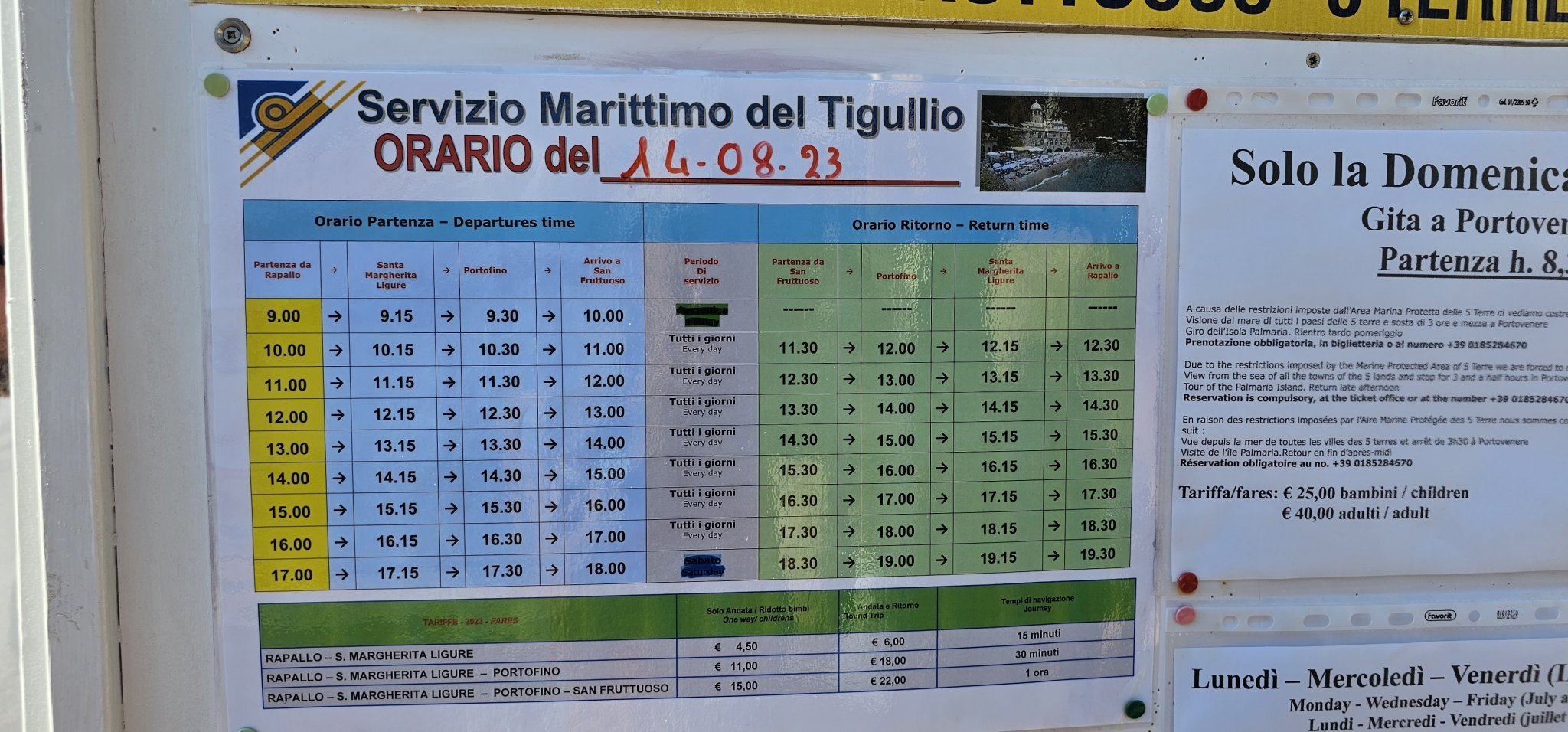 След като огледахме възможните точки за стартиране на пътуване с корабче към Портофино, решихме да стартираме от Рапало, а да приключим водното пътуване със Санта Маргерита Лигуре(прочетох, че има опции и с автобус до Портофино, но ние си държахме на максимално водно изживяване). Има опции и за нощни разходки: