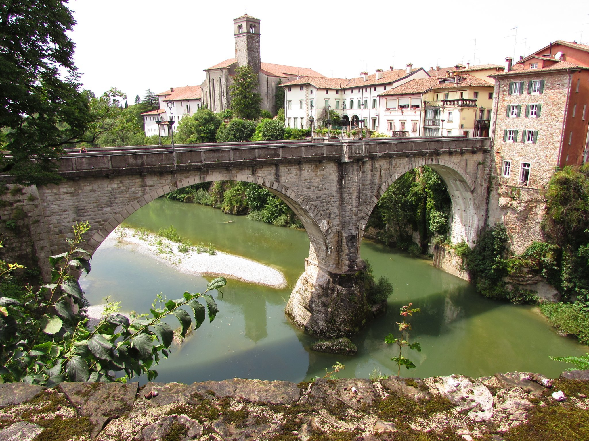 Следобед успяхме да стигнем до Чивидале. Точно влязохме в града и започна да се излива. Нали два дни по-рано мрънках, че жегата е ужасна в Загреб и Реджи каза, че се очакват дъждове. Е, позна...ама не само дъжд, ами каква градушка ни валя. Grinning Успяхме да паркираме до някаква сграда с навес и излязохме от колата, докато отмине градушката. Оказа се, че сме точно пред музея на Втората световна война (Museo della Grande Guerra), разположен в сградата на стара гара. Музеят беше затворен лятото, обаче. Точно до него има голям безплатен паркинг, където се преместихме, след като изпече и тръгнахме към центъра на разходка. Предимството след такъв дъжд е, че центъра беше празен, но пък задуха беше убийствен. Много красиво градче, една от забележителностите е Дяволският мост.