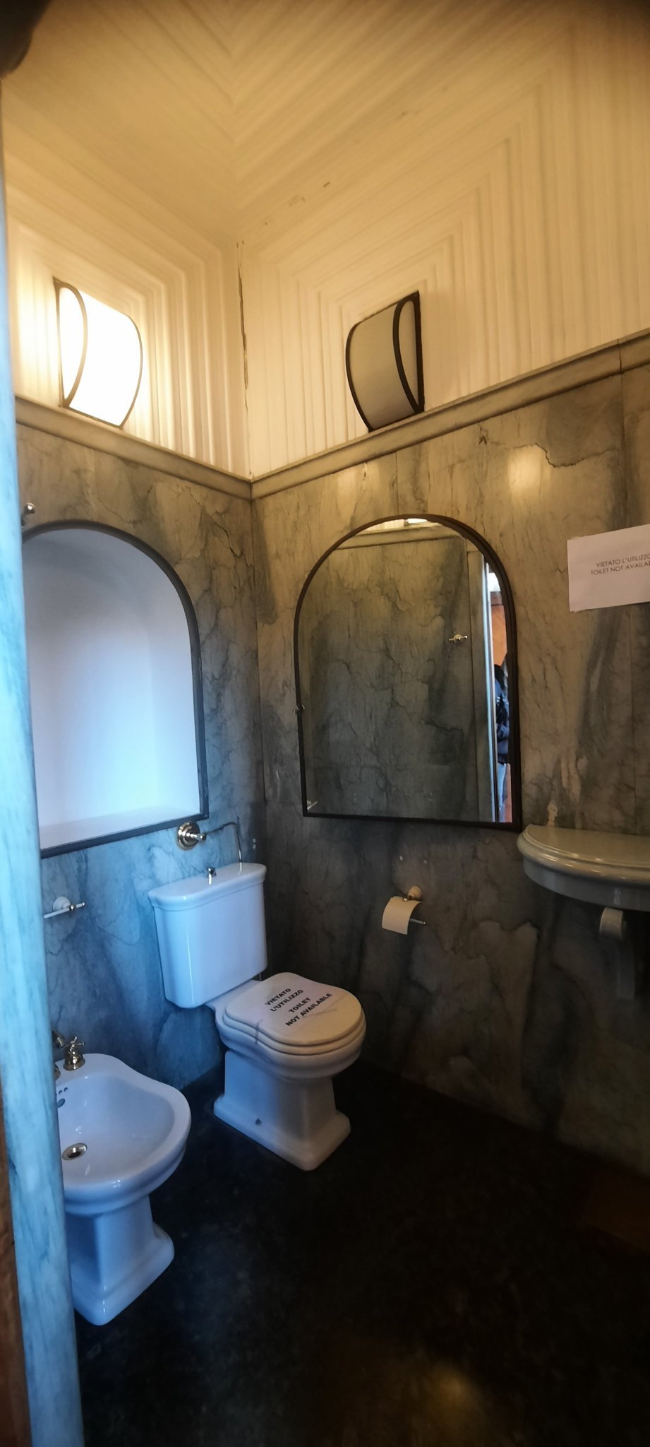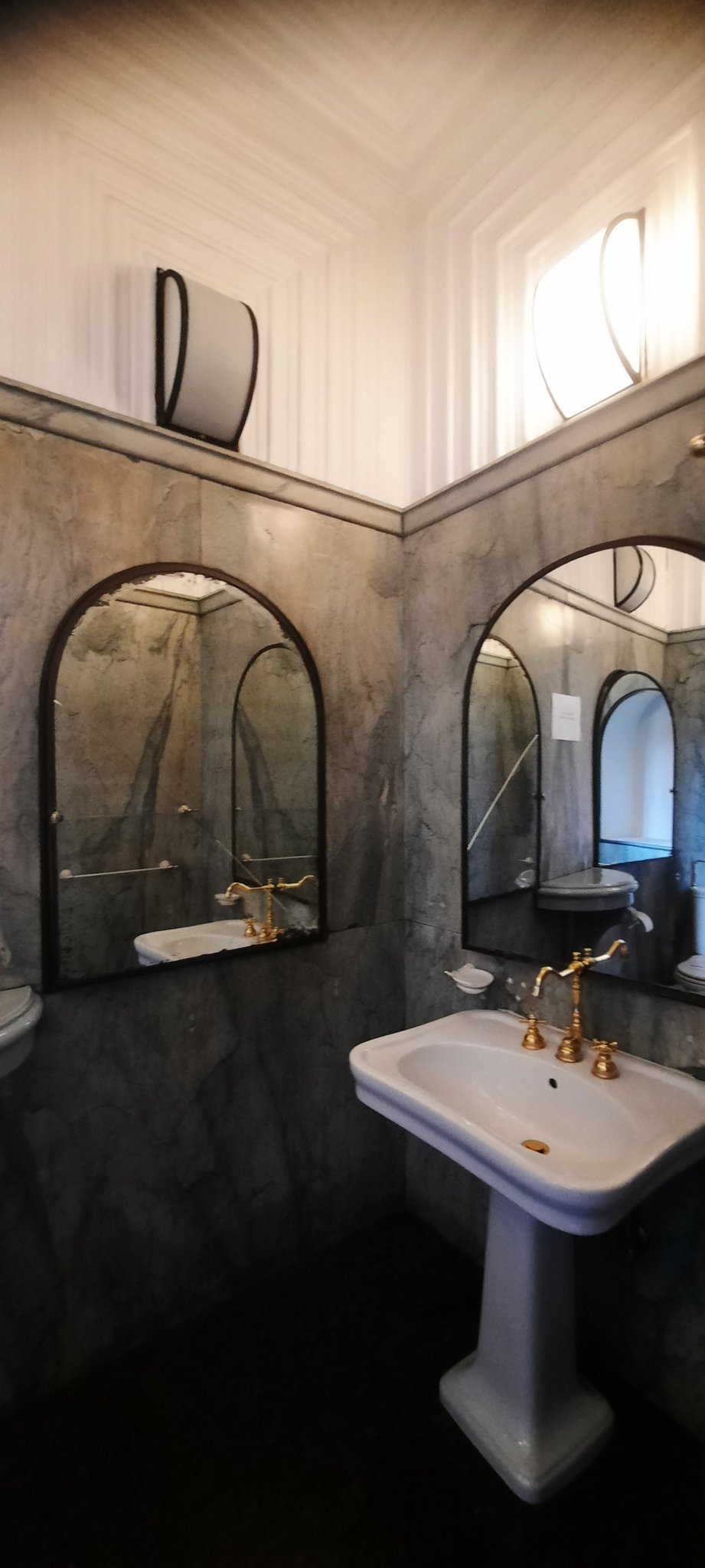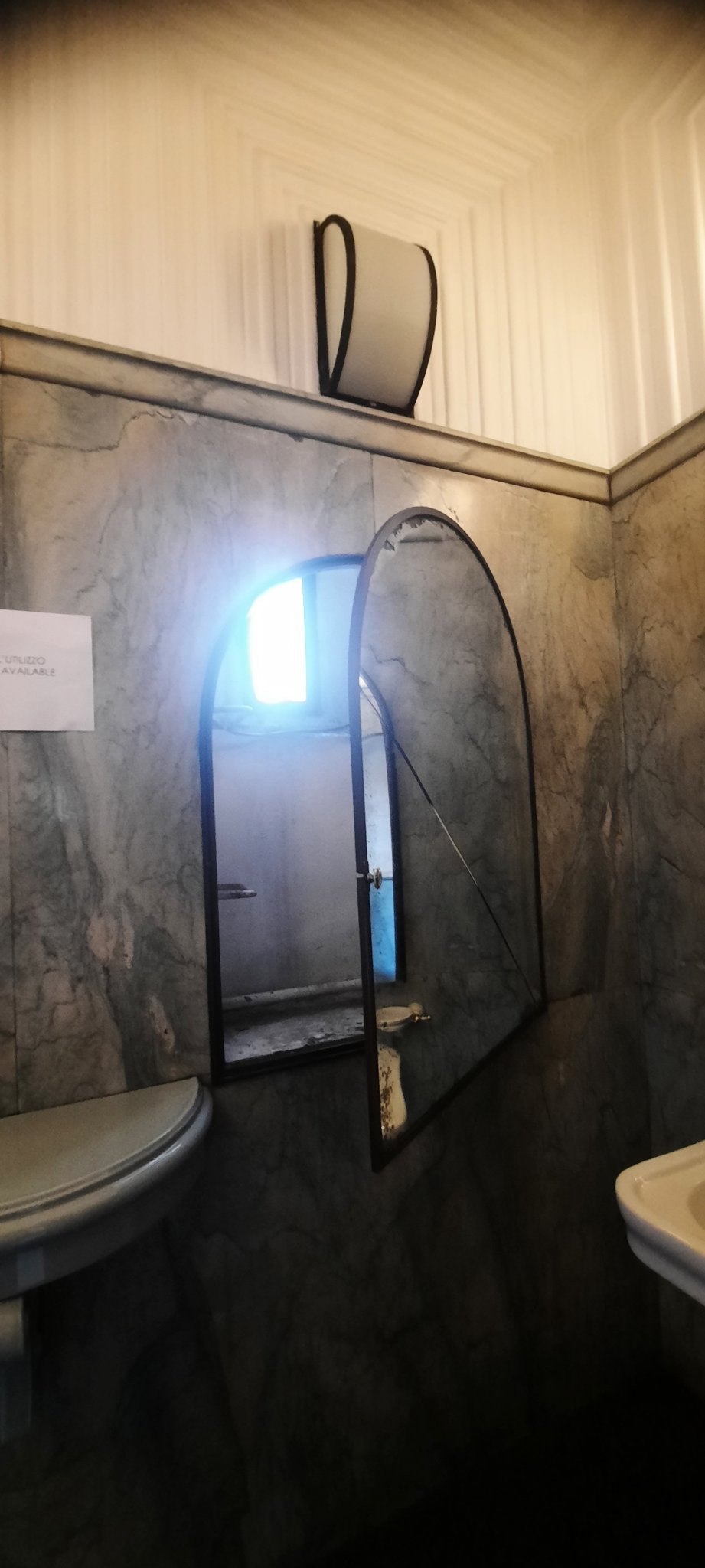 В тоалетната зад едно от огледалата има стълба, да могат да избягат в случай на опастност.