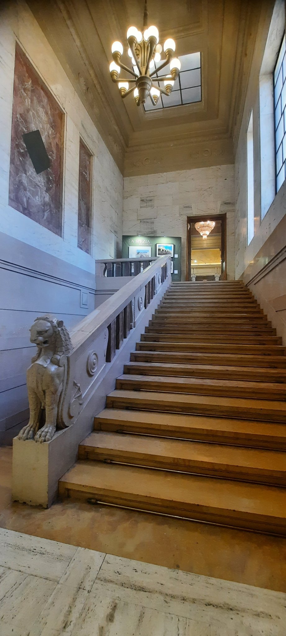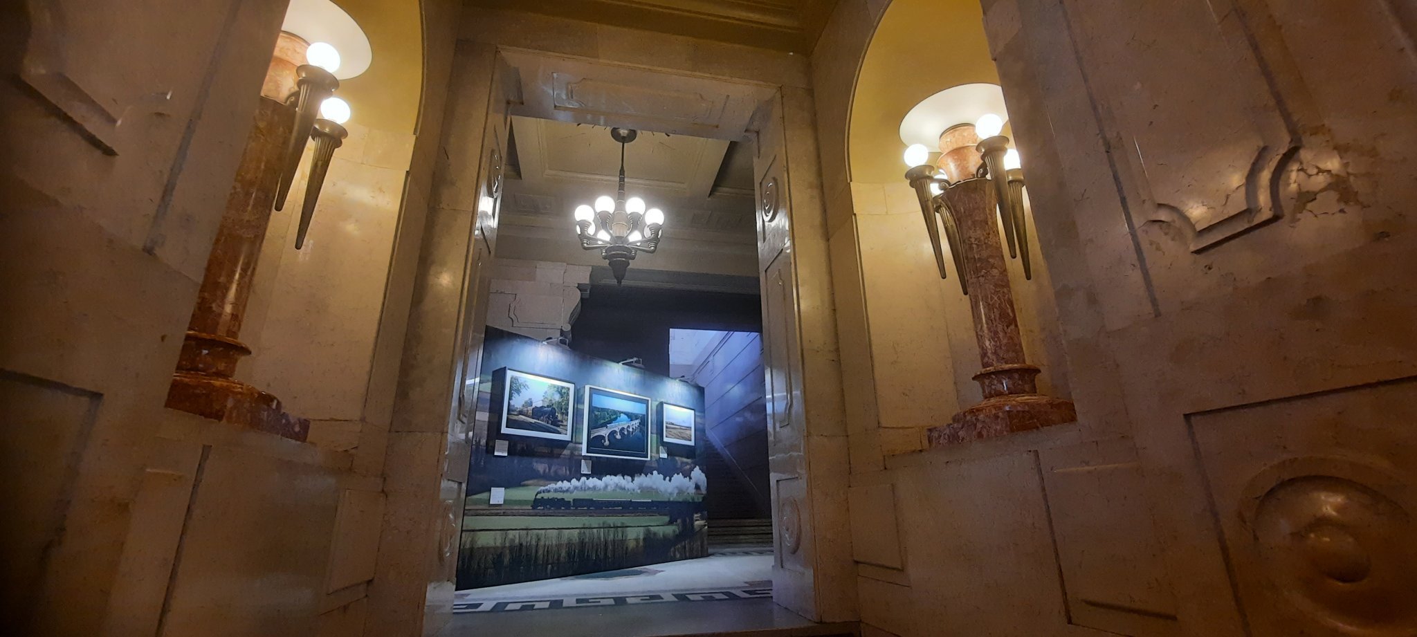 П.п. вероятно, заради изложбата са махнати червеният килим по стълбището и креслата.
