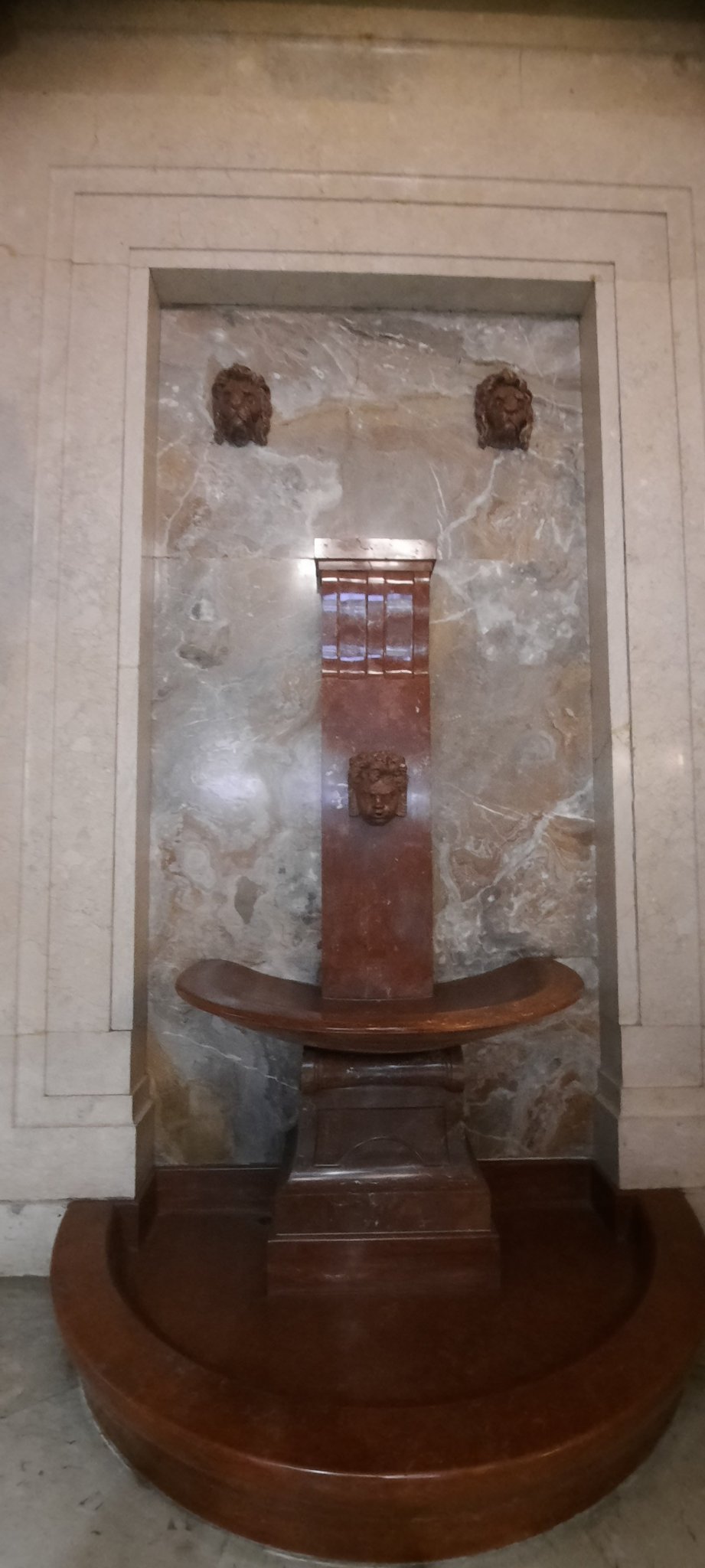 На вторият етаж е самата чакалня с мраморни колони, пищни полилеи, барелефи, кадифени кресла и т.н.