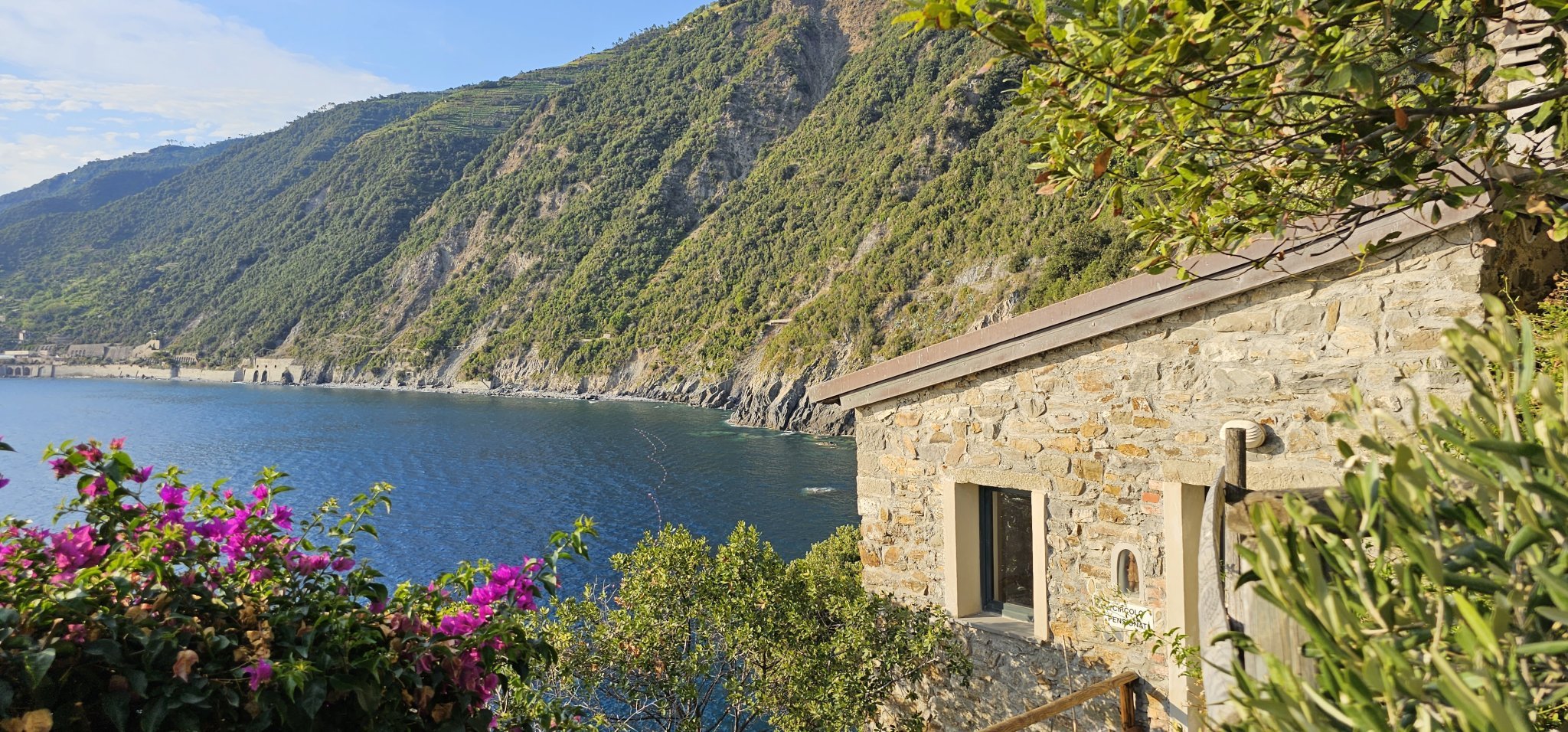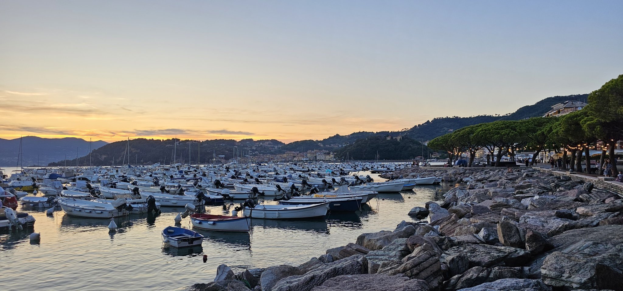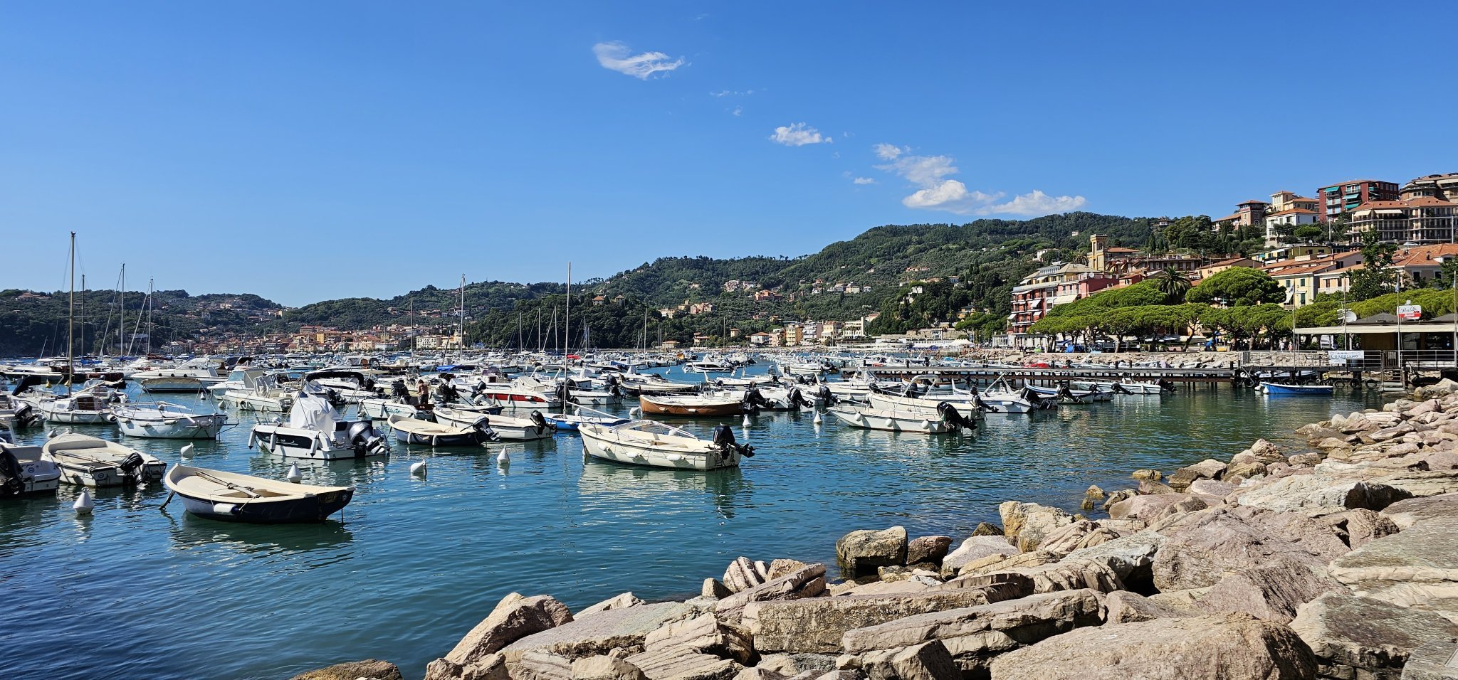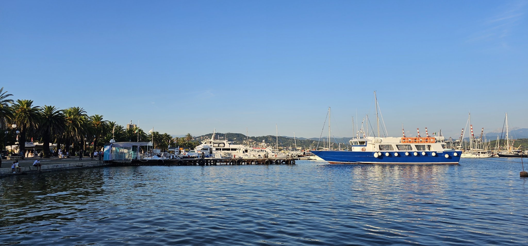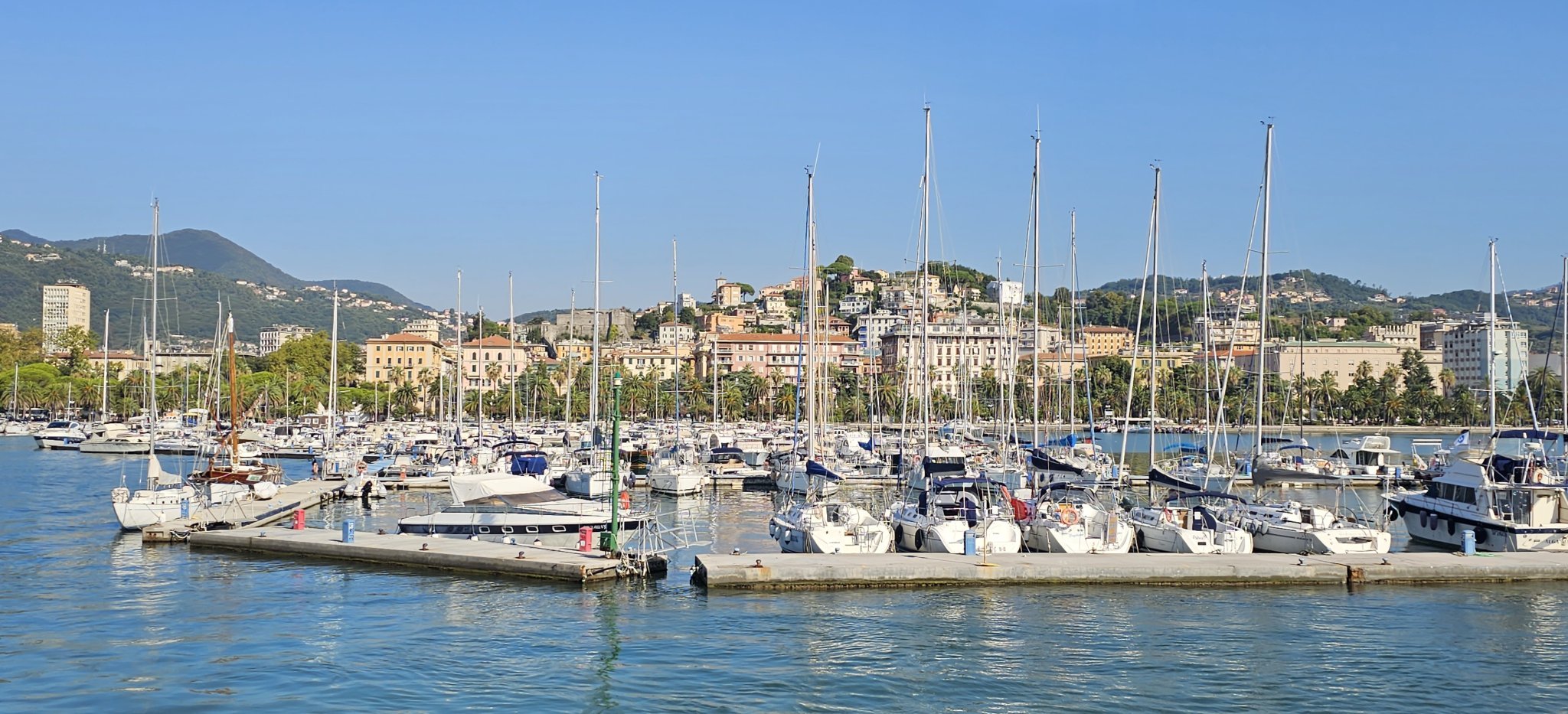 Ден втори: С ферибот потеглихме към последното селце от всичките пет, които са част от крайбрежната област Чинкуе Тере, Монтеросо ал Маре. Хубаво е да сте доста по-рано за качване, първият ферибот в 9.00 часа беше препълнен и всички бяха заели места в 8.50 часа. Гледките са много красиви и така виждате всяко селце от водата, има спирка на всяко, което е много красиво като изживяване. Самото пътуване е живописно, много си заслужава. Гледка при потеглянето от Ла Специя: