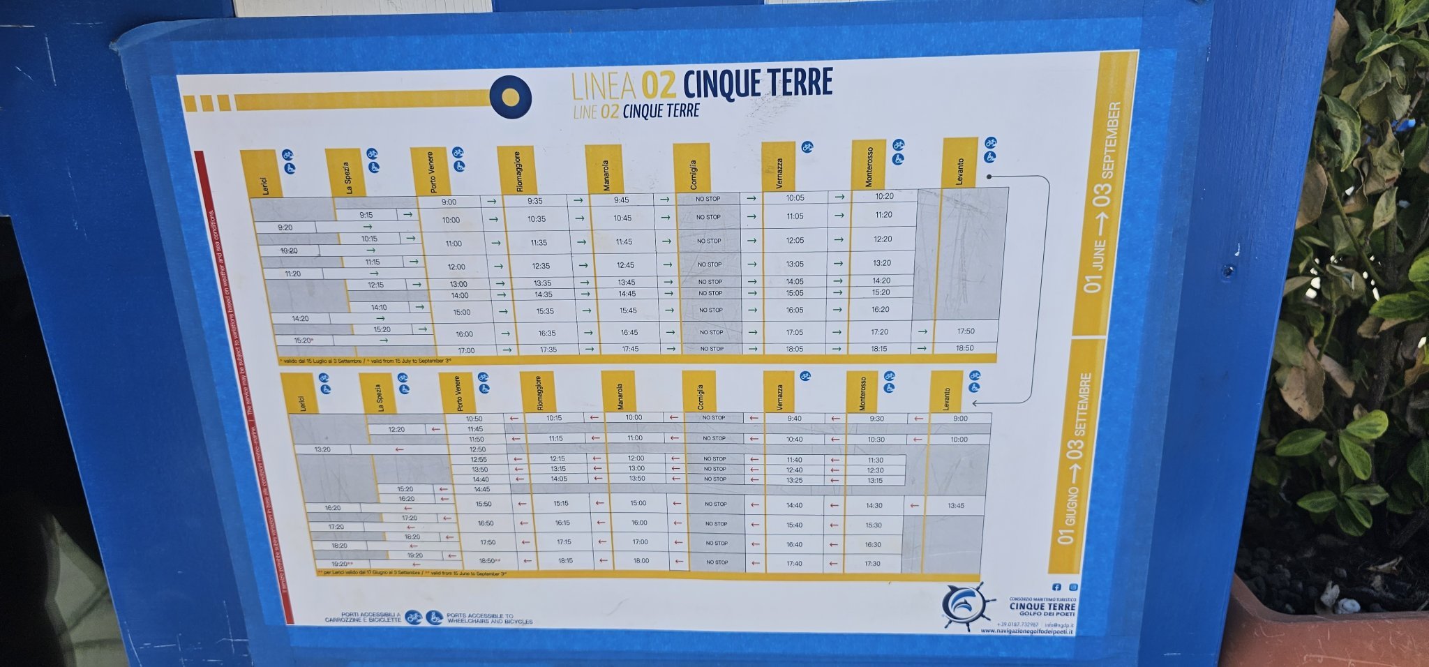Кацнахме на летище Orio al Serio(Бергамо), от там с автобусите отпред стигнахме до централна гара в Милано. Както е писано много пъти в темата: те са на различни фирми, почти постоянно има потеглящи, 12 евро е цената към момента, пропуснах да засека времето на пътуване, беше над 40 минути мисля. В Милано посетихме офиса на Trenitalia на гарата, там посреща служител, който пита за какво сте там, избира вида на услугата на екран и ви дава билет за ред(следите на табло на кое гише трябва на отидете, когато дойде реда ви). Имахме късмет да сме там, когато нямаше голям наплив от туристи и чакахме 10 минути само. За по-ориентираните хора има и автомати за билети, но ние искахме да се консултираме. Една от приятелките ми говори италиански, зададе всичките ни въпроси и искам да отбележа, че служителката беше изключително мила и любезна. За втори път пътуваме през Милано и се консултираме в този офис, предният път също служителката беше изключително отзивчива и мила. Аз правих плановете ни за пътуване с влакове чрез приложението Train Timetable Italy. Но така и не ми ставаше ясно защо за някои влакове нямах опция за покупка. Разбрахме в офиса: защото всички билети са продадени. 😊 Служителката ни показа на екран всички възможни опции до Ла Специя, за съжаление нямаше вече билети за директни влакове, купихме последни места във влакове с прекачване. Това ни накара да купим веднага места за влака на връщане след няколко дни и беше много добър ход. Даде ни билетите, сметна по колко струва за всяка от нас. Въпреки че платихме общо, ни върна ресто отделно за всяка. Ние бяхме просто супер впечатлени. Прекачихме се в Генуа, не трябваше да валидираме билети. Просто слязохме от едниния влак и се качихме на следващия. Имах притеснение да няма закъснение и да го пропуснем, защото в приложението виждах, че някои влакове имат големи закъснения. Но за щастие 20 минути между влаковете бяха достатъчно и всичко беше точно. Четири часа беше пътуването общо от Милано до Ла Специя(през Генуа). Нямаше кой знае какви впечаталяващи гледки по пътя, по крайбрежието имаше хубави гледки, но там се пътува изключително през тунели. Климатиците бяха много силни и при външна температура 32 градуса, вътре беше потресаващо студено за нас, но не и за местните. Но имаше и други туристи като нас, които започнаха да вадят налични хавлии, дрехи и шалове.