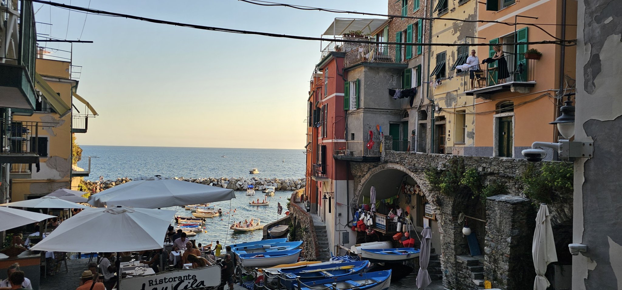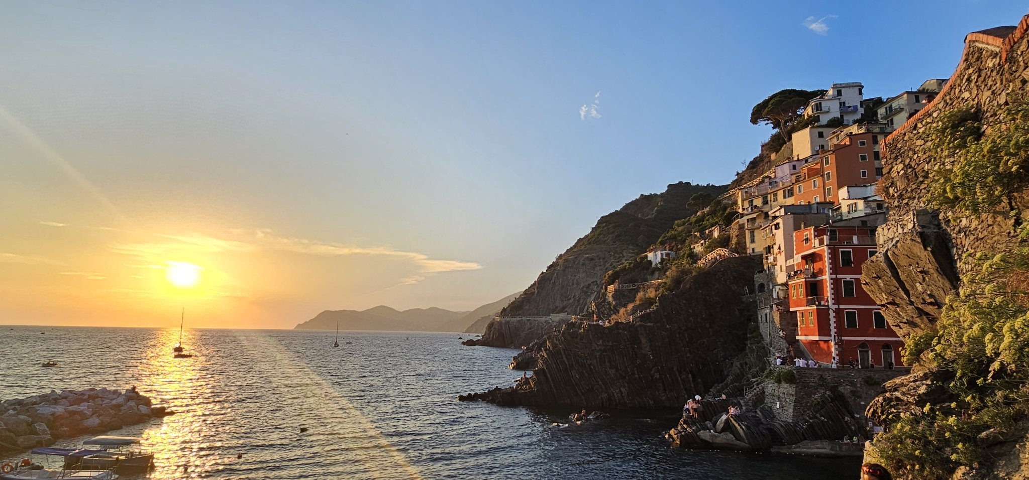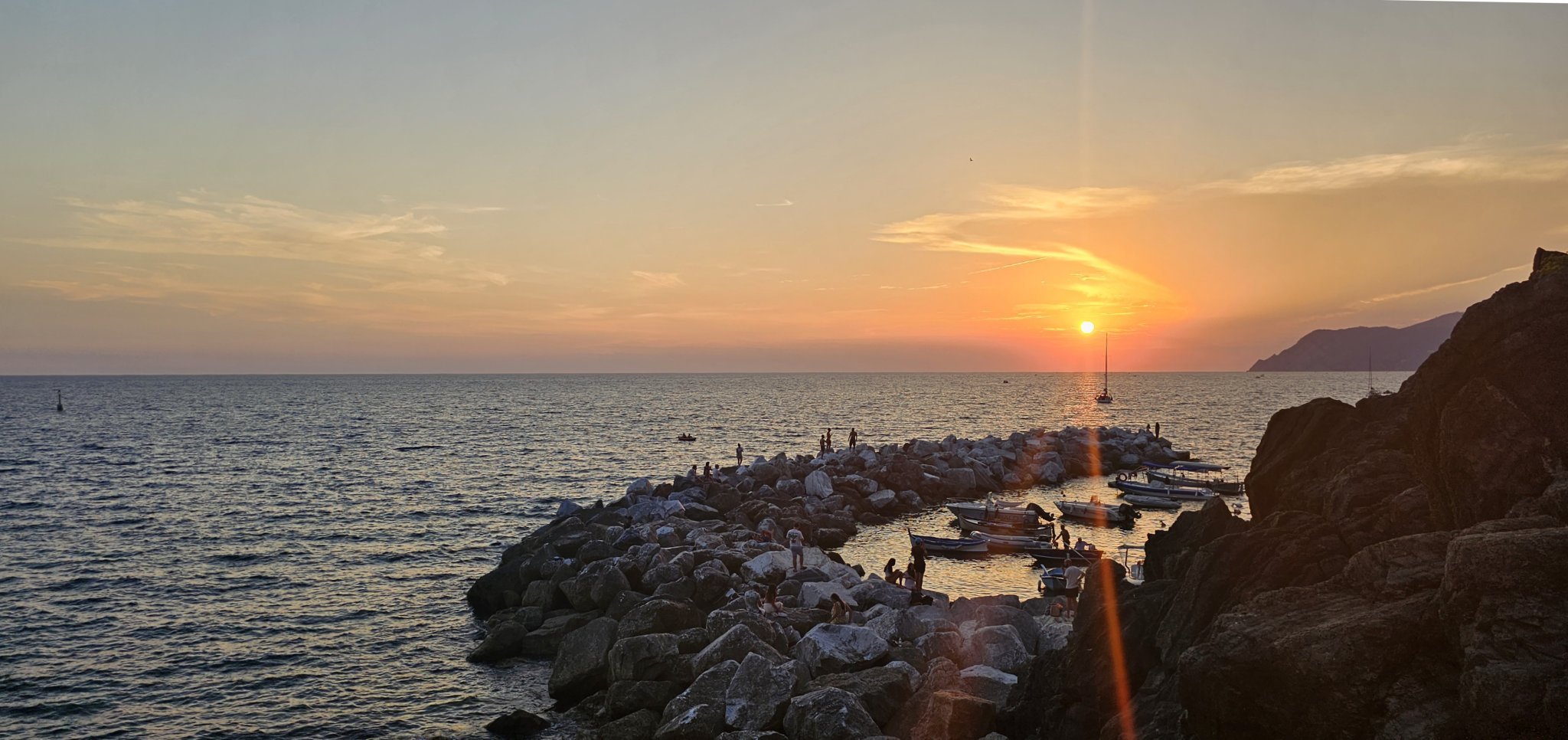 За съжаление ние вече нямахме много време до залез и бързахме за Риомаджоре. Точно преди залез бяхме на правилното място(хората бързаха с пици в кутии за гледка към залеза), невероятно красиво беше, разходихме се край скалите наоколо, беше незабравимо, приключихме с вечеря там и с влака се прибрахме отново късно(но пътуването беше само няколко минутки). 😊 Беше незабравим ден. В заключение бих добавила, че докато проучвах районите срещах съвети, че спокойно може да се пропуснат някои от селцата на Чинкуе Тере(всеки даваше съвети за различни). Аз не бих пропуснала, заслужава си да се види всяко, макар и за малко. Предполагам през месеците извън силния сезон ще е много по-приятно.