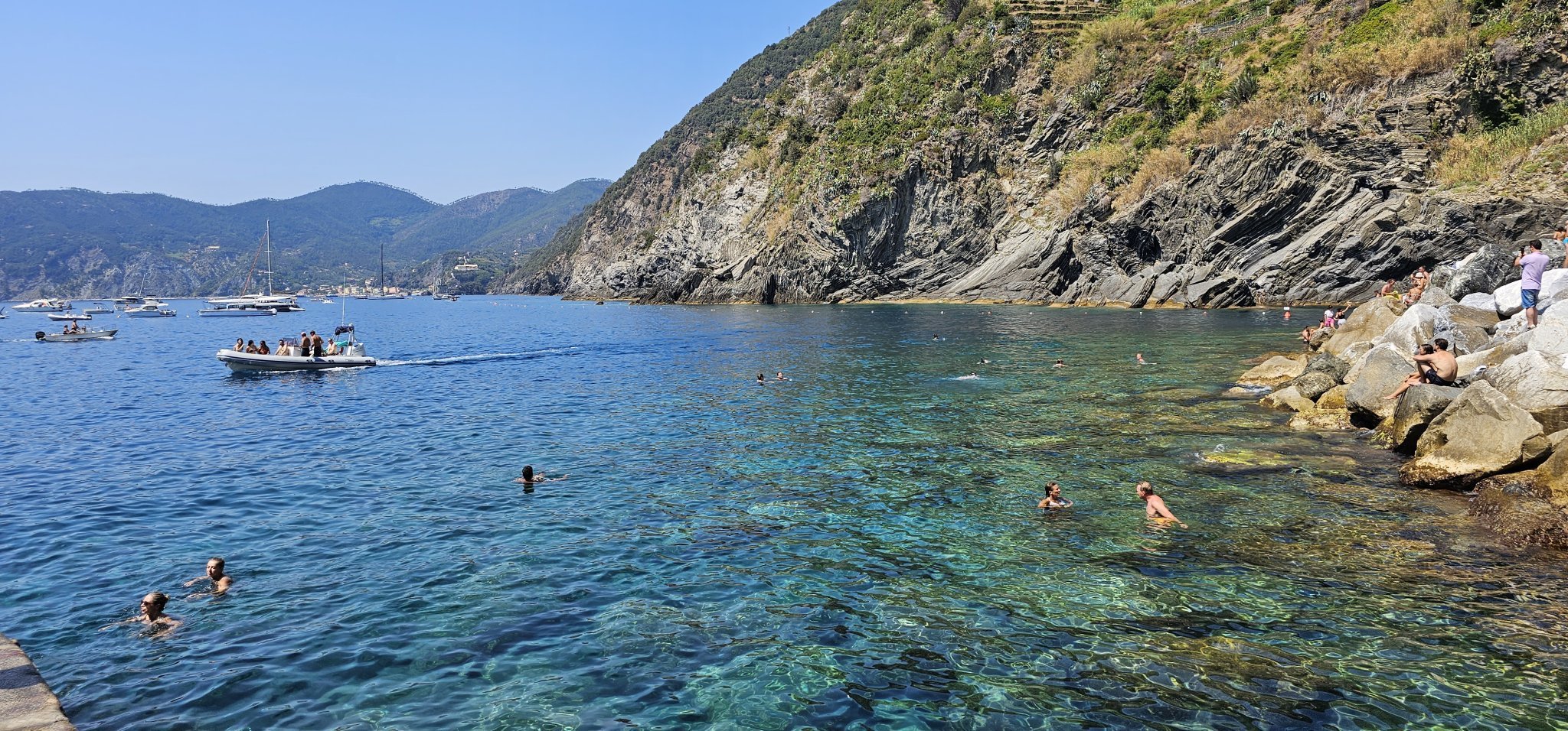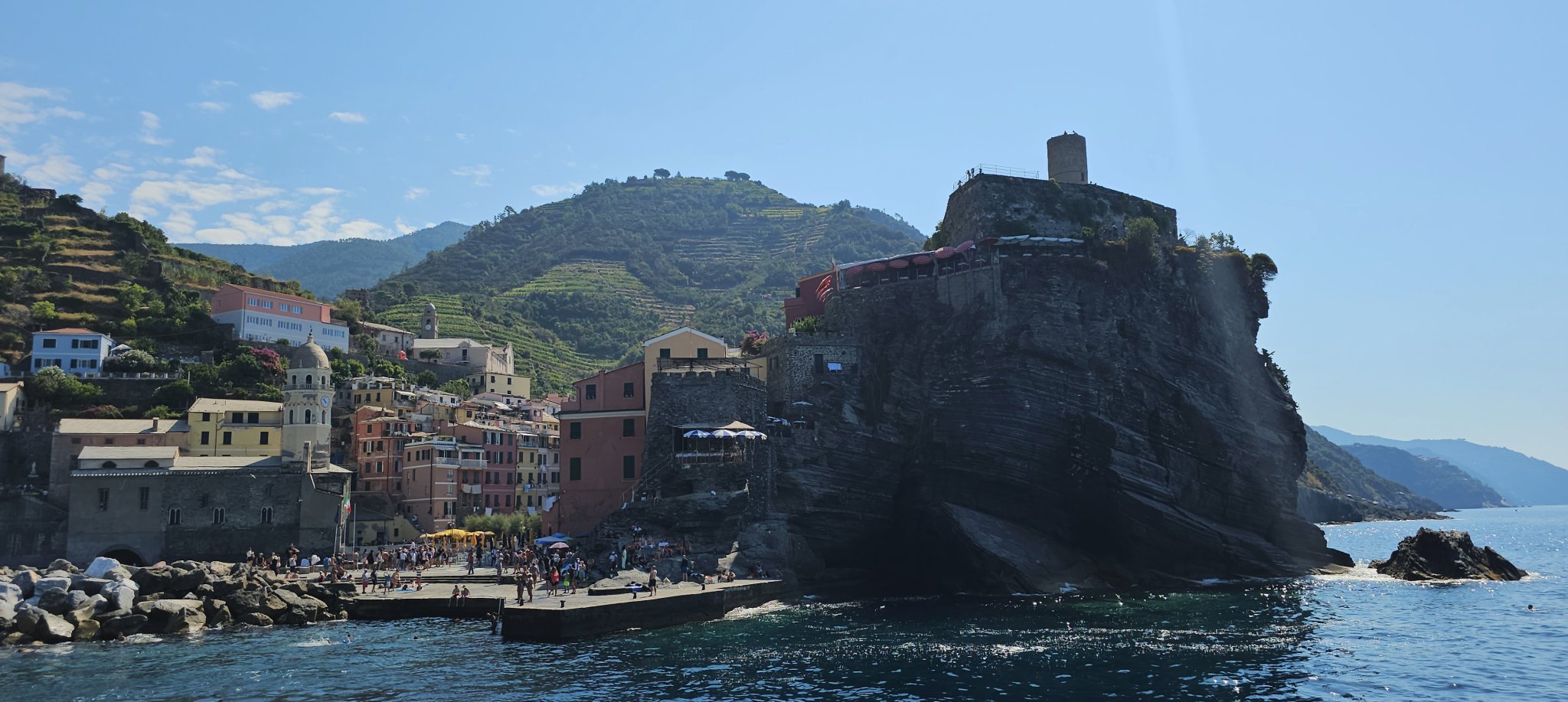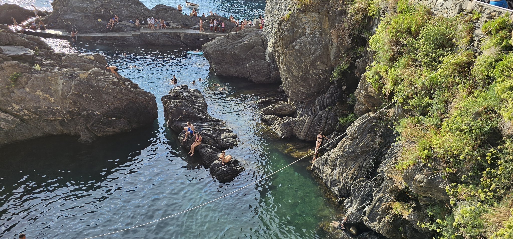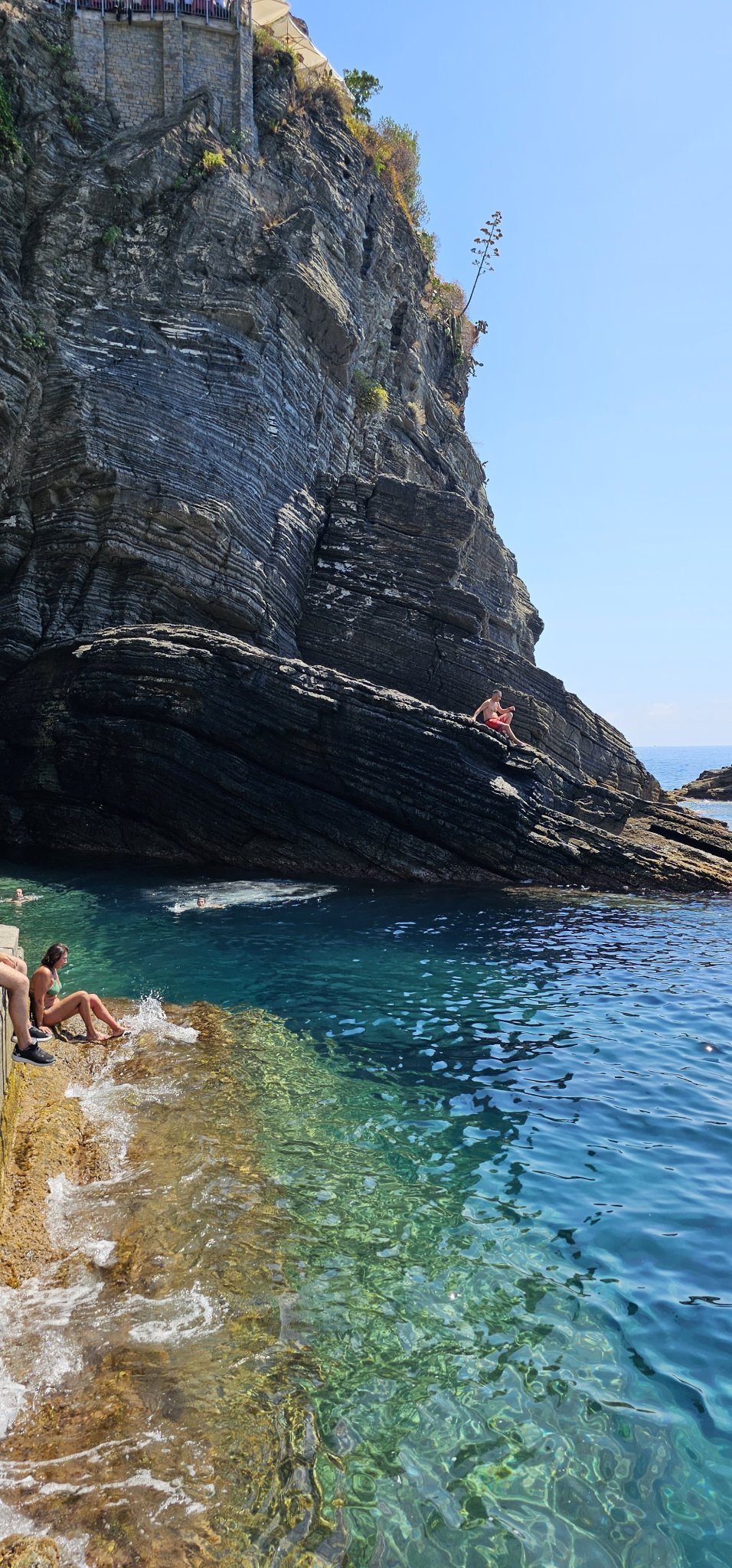 Вернаца: няма такава лудница. Със слизането от влака те понася една вълна от хора, почти не може да се отклониш. Малко е и е пренаселено през август. Погледахме как се къпят хората, водата и скалите бяха божествени, качихме се нагоре по едни стълбички към кулата, откъдето се откриха красиви гледки, там беше и доста спокойно, след което потеглихме набързо. Горещината с тълпата там ни уплашиха.