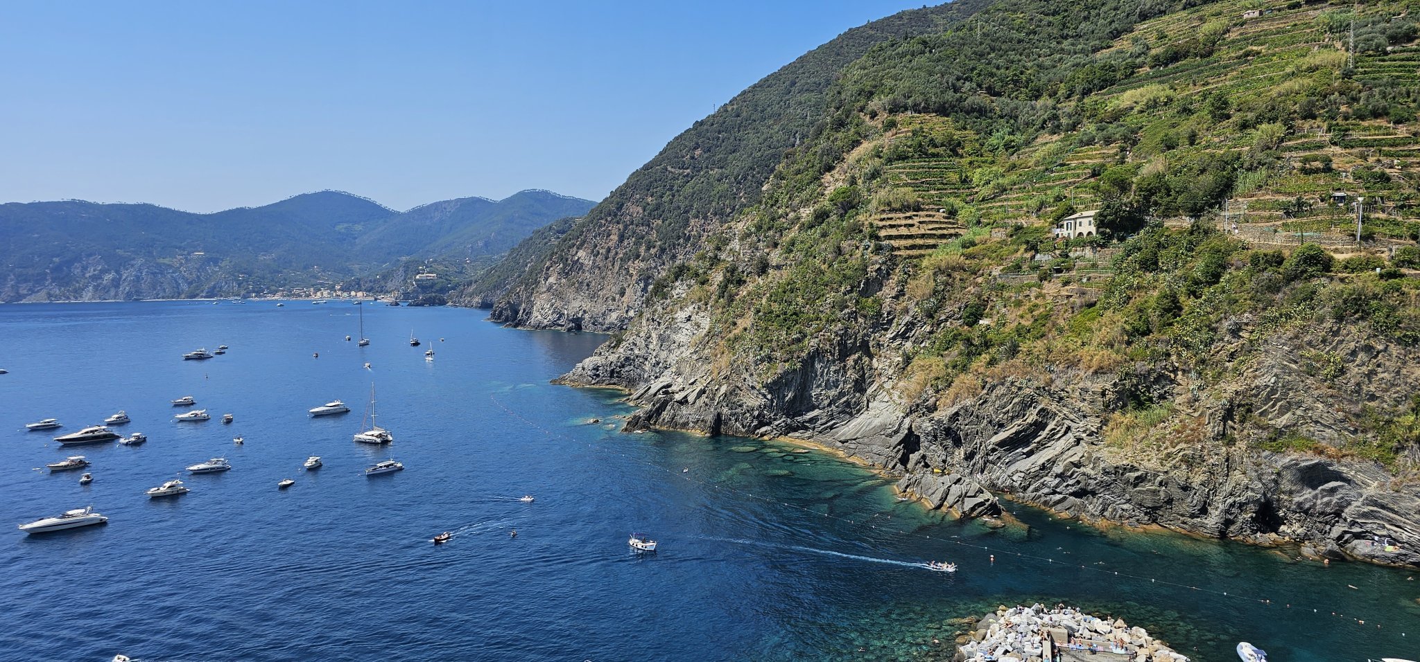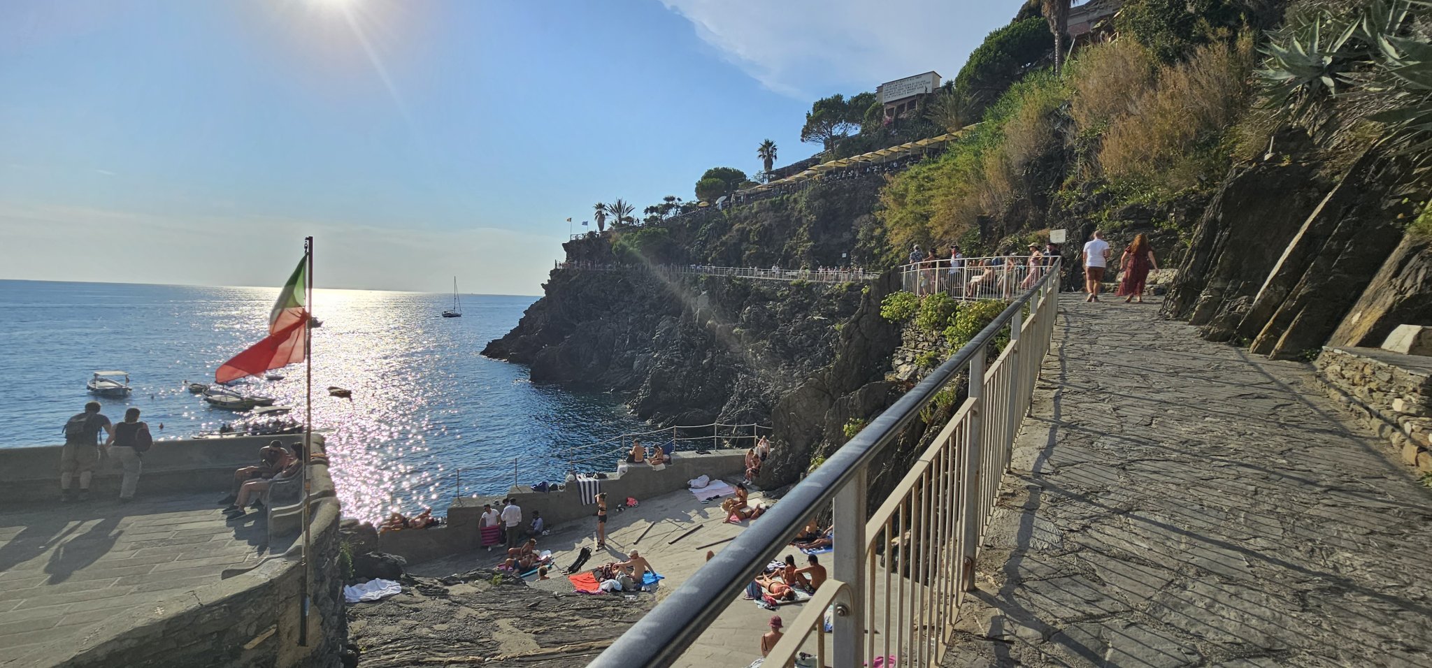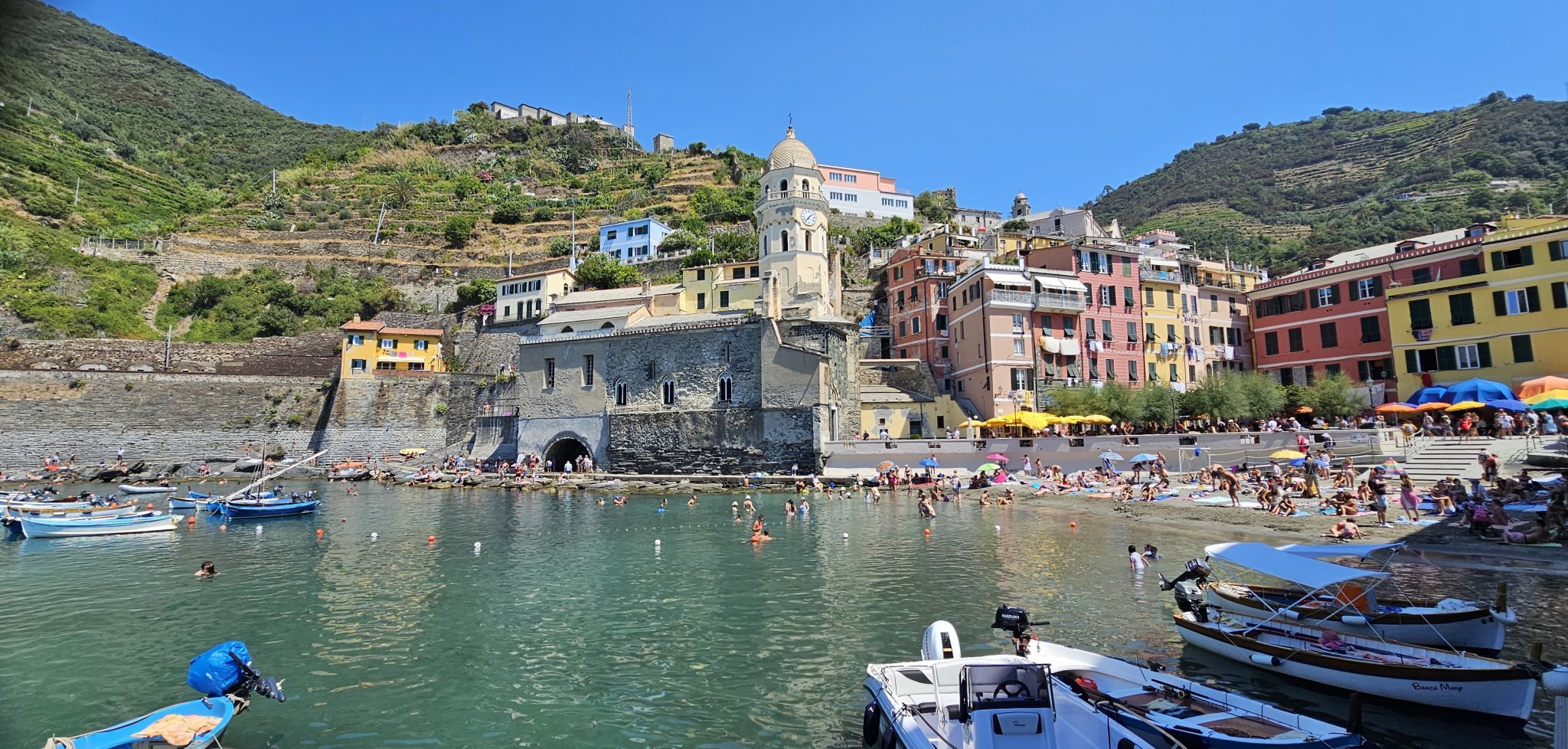 Вернаца: няма такава лудница. Със слизането от влака те понася една вълна от хора, почти не може да се отклониш. Малко е и е пренаселено през август. Погледахме как се къпят хората, водата и скалите бяха божествени, качихме се нагоре по едни стълбички към кулата, откъдето се откриха красиви гледки, там беше и доста спокойно, след което потеглихме набързо. Горещината с тълпата там ни уплашиха.