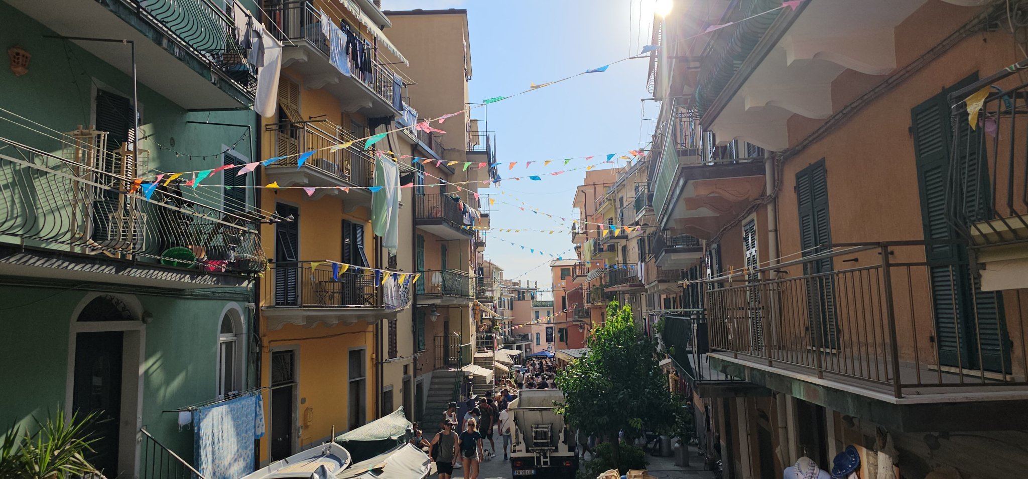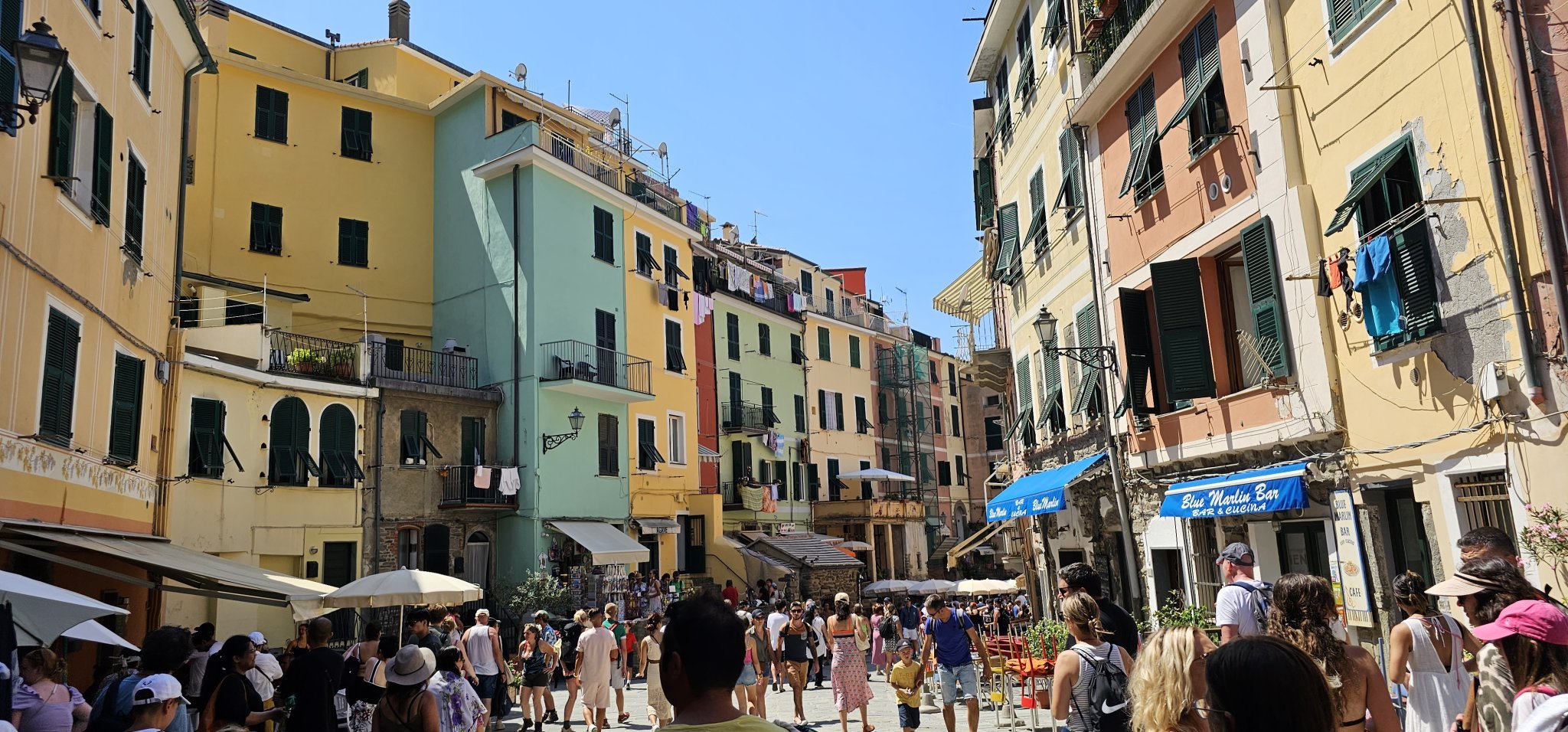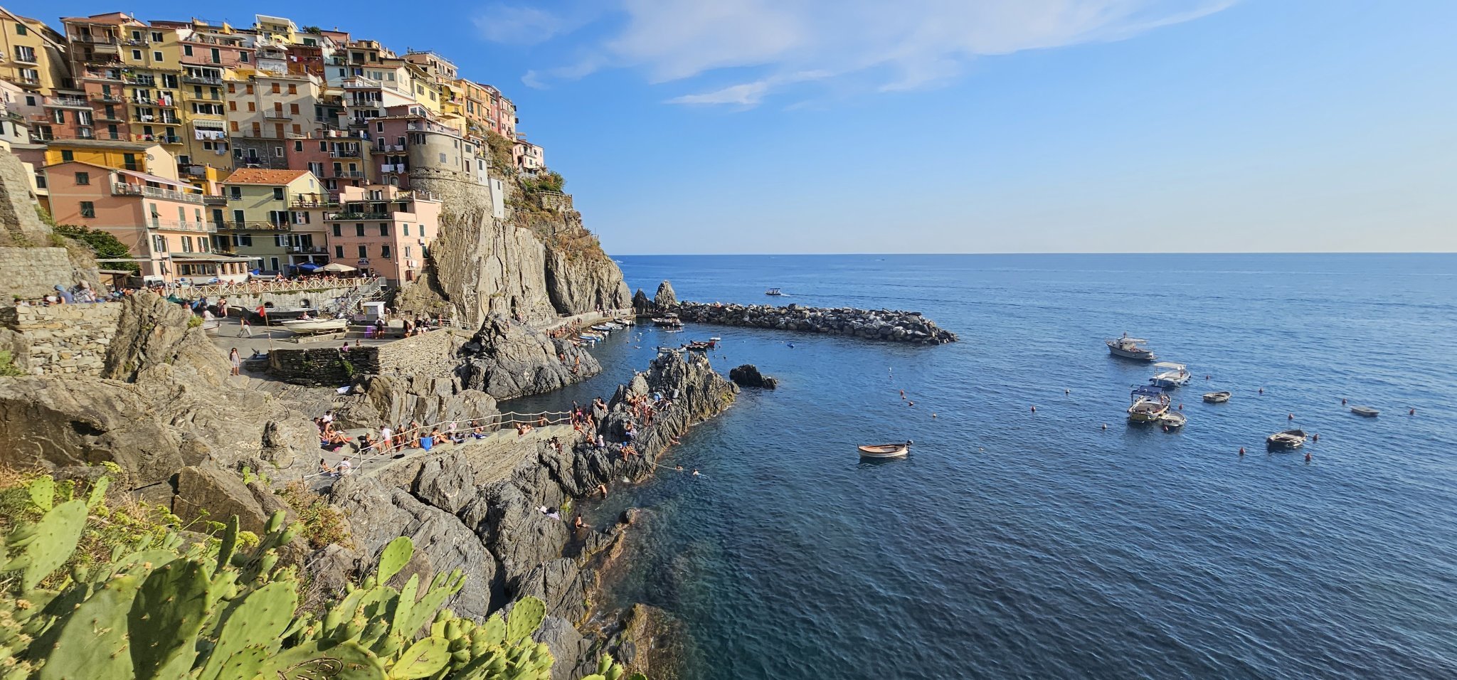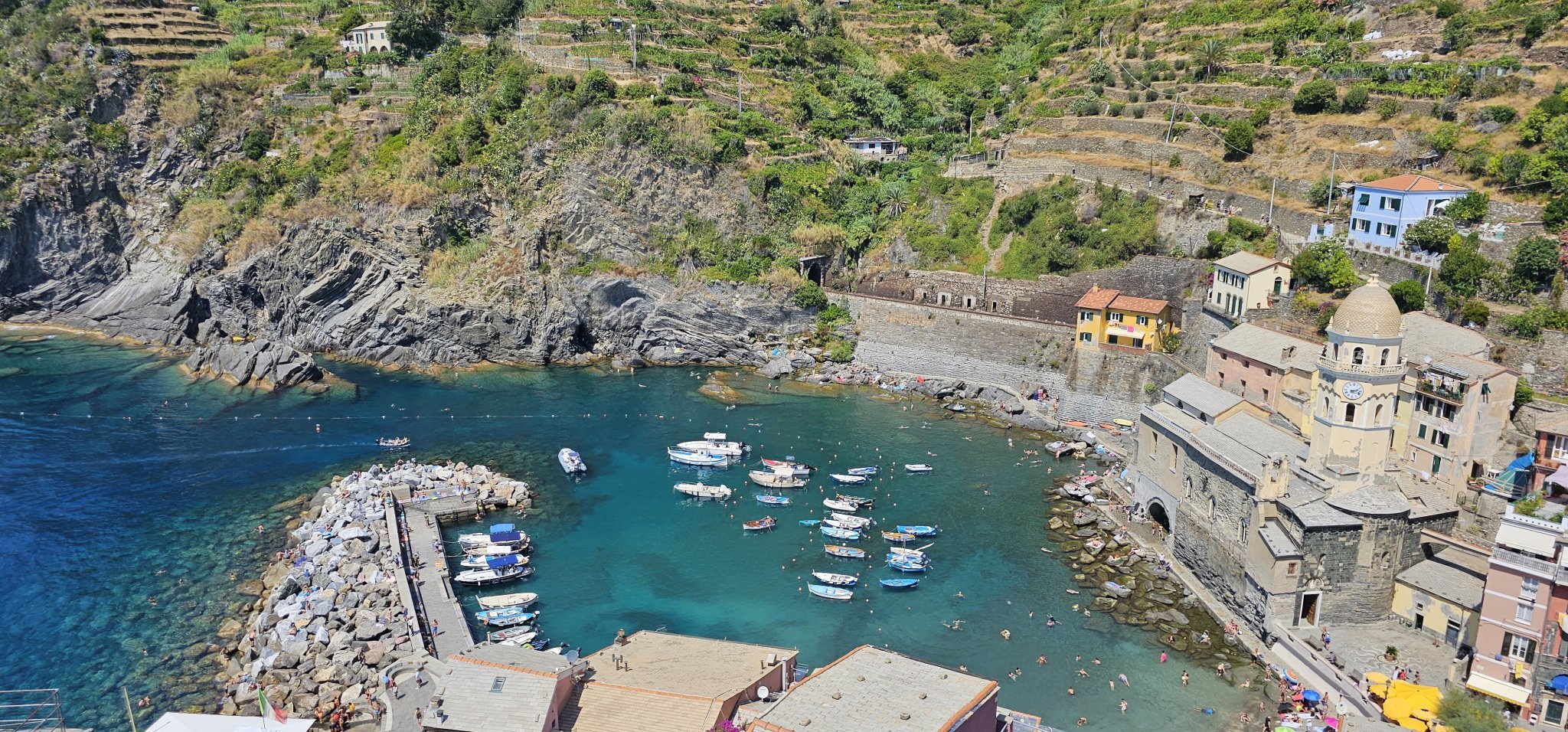 Вернаца: няма такава лудница. Със слизането от влака те понася една вълна от хора, почти не може да се отклониш. Малко е и е пренаселено през август. Погледахме как се къпят хората, водата и скалите бяха божествени, качихме се нагоре по едни стълбички към кулата, откъдето се откриха красиви гледки, там беше и доста спокойно, след което потеглихме набързо. Горещината с тълпата там ни уплашиха.
