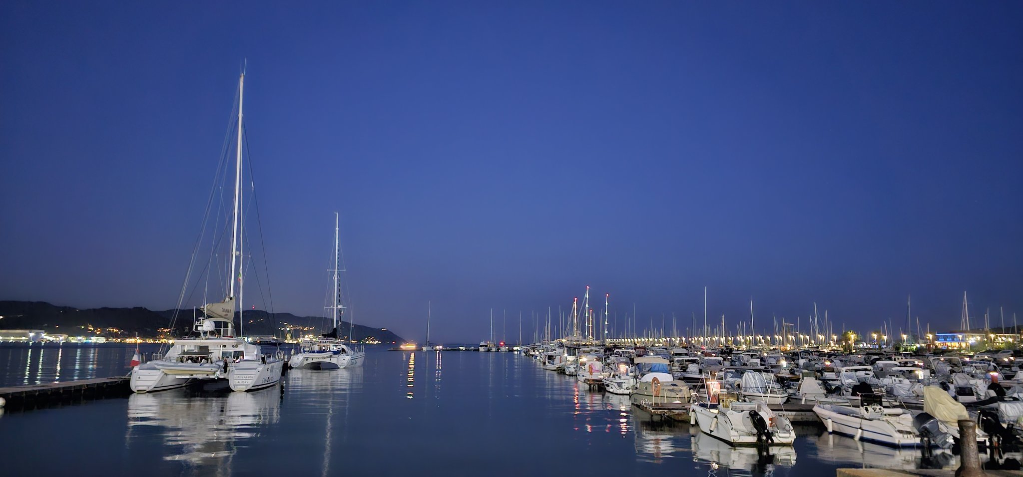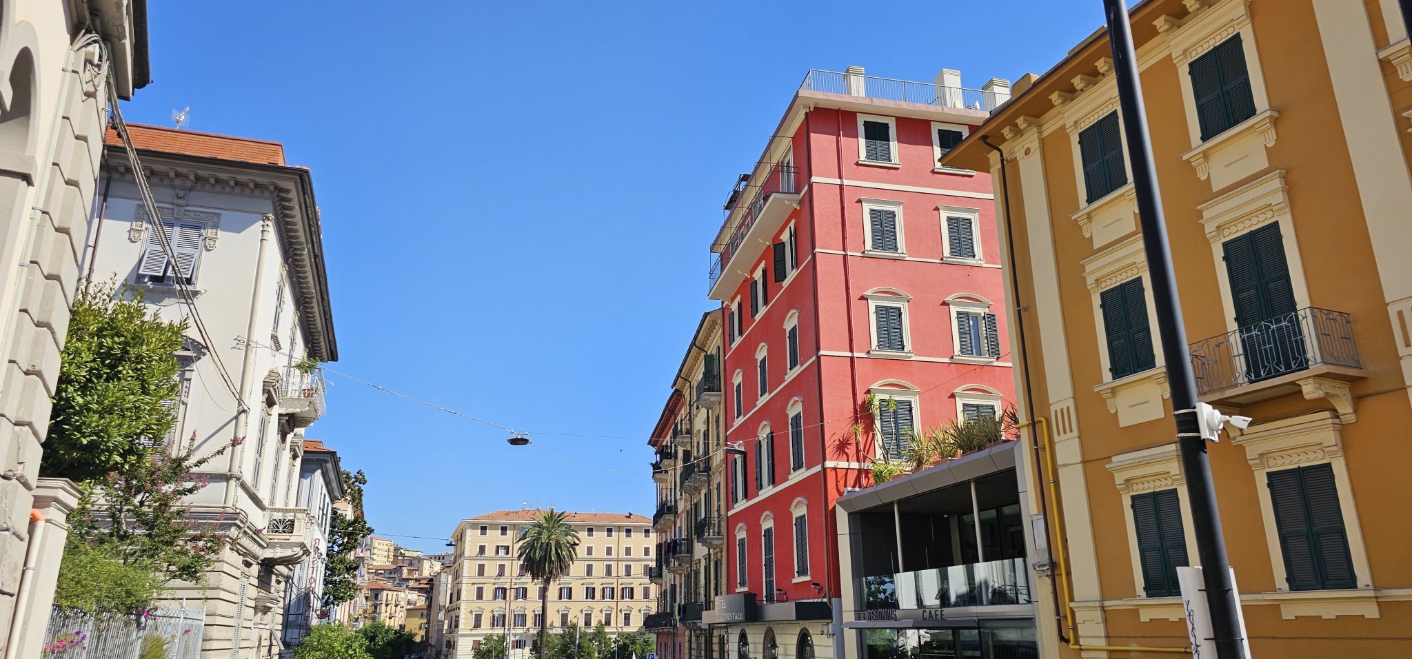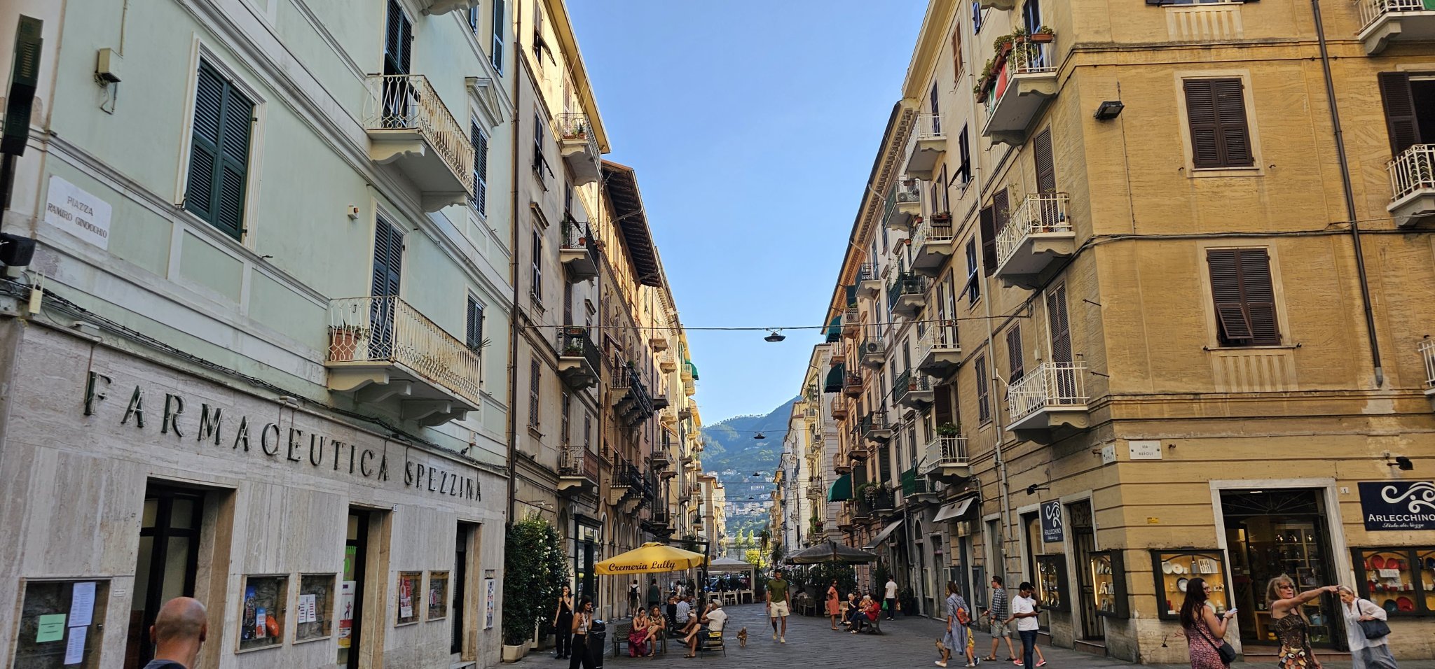 На 5 минути пеша от гарата, на 10 от пристанището, на супер оживен малък площад с фонтан и улица с десетки заведения, магазини(които работеха  и след 00 часа). Липсата на климатик не се усети, вътре беше комфортно и леко шумно, ако се спи на отворен прозорец, на затворен беше тихо. Прибирахме се понякога в 01 вечерта с влак и не сме се чувствали притеснени или застрашени, постоянно имаше поток от млади хора. Вечерта край пристанището има концерти, партита, красиво осветено е. Малко снимки от Ла Специя:
