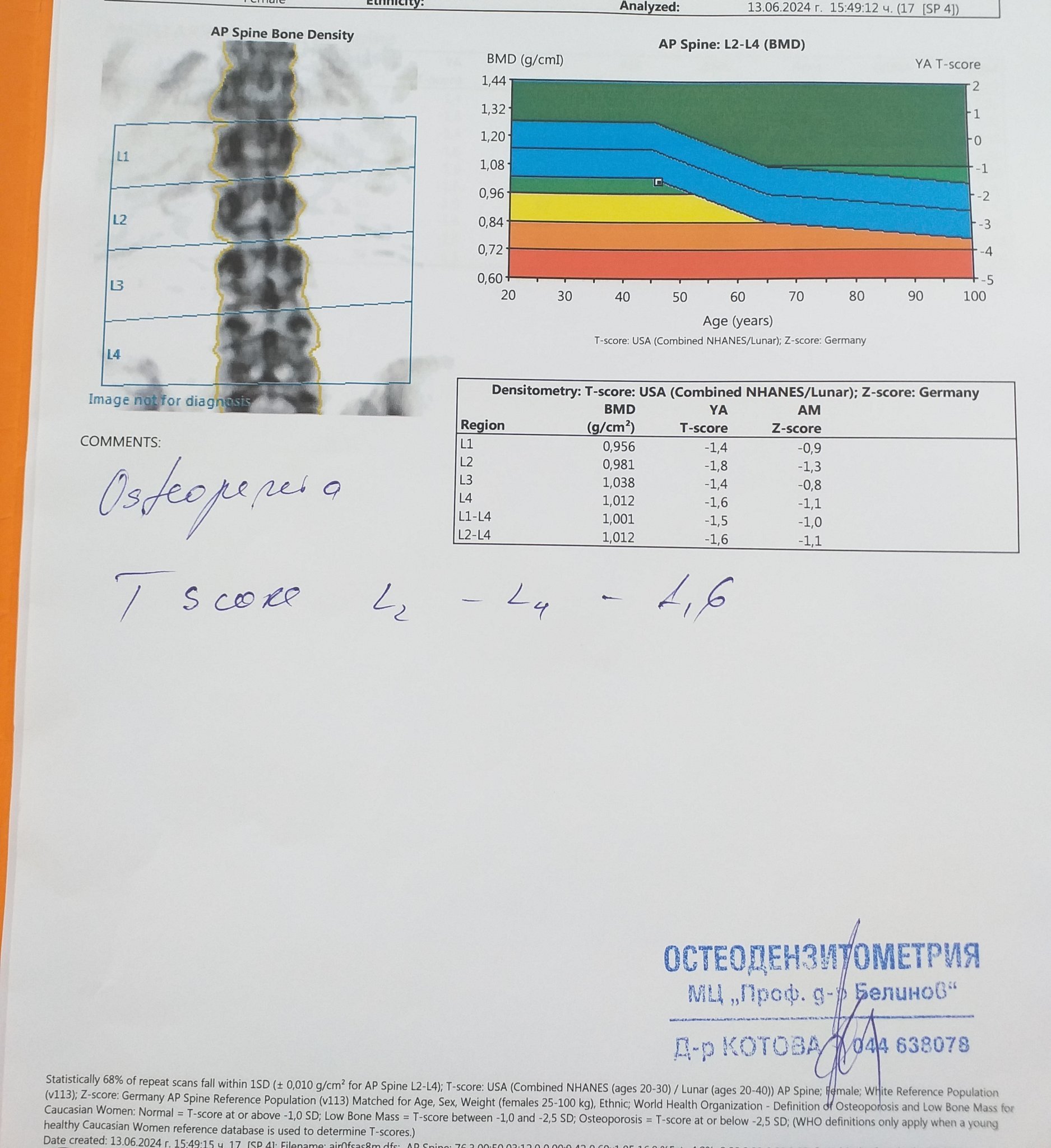 Благодаря ви за отговора! Прилагам снимка на изследването за остеопороза.