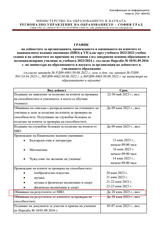 Това е друго. В заповедта на МОН, качена от нашето РУО (провинциално), графикът не изглежда така.