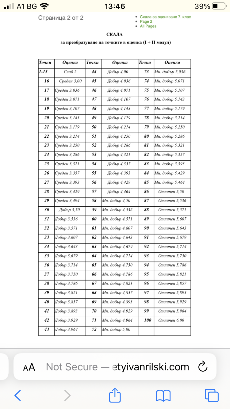 НЯМА скала за преобразуване на точките в оценки! Милион пъти беше написано...