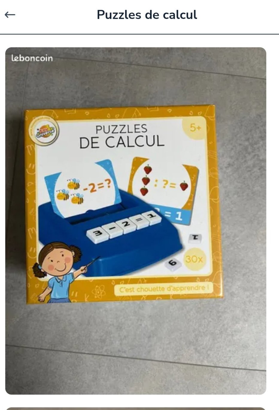Има няколко варианта във Vinted, цените са супер ниски 2-3евро и ощо толкова за доставка. https://www.vinted.de/catalog?search_text=puzzles%20de%20calcul& … 1757421971&page=1