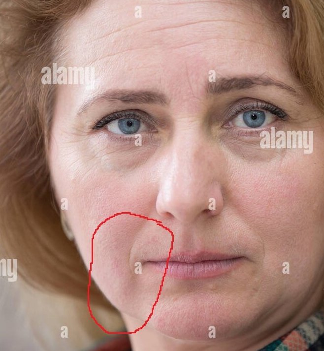 Мисля , че това е с ботокса на мускулите , който се слага при бруксизъм.